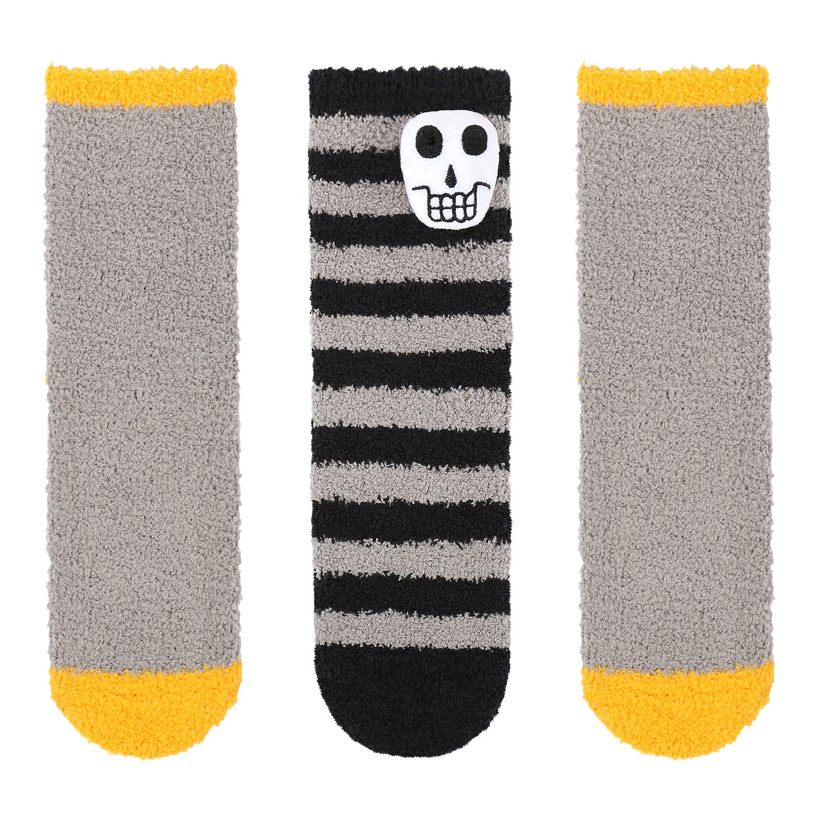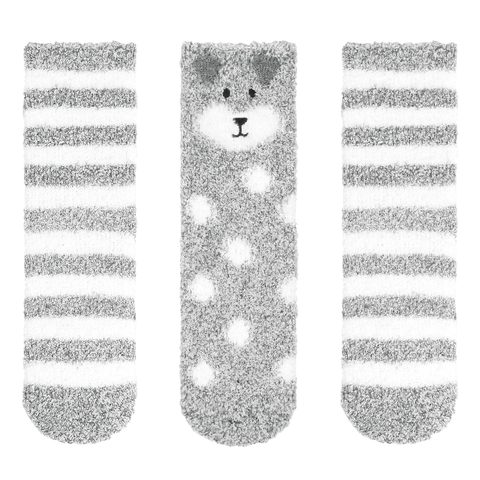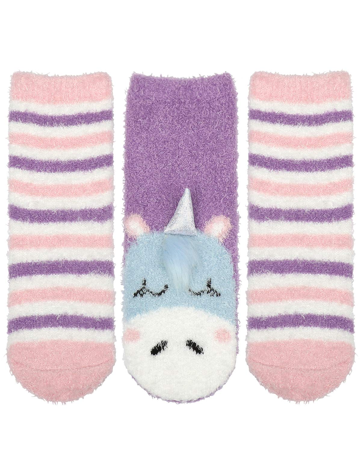 Panda Bros Girls Warm Fuzzy Fluffy Socks, Non Skid Slipper Socks for Kids, 3 Pairs