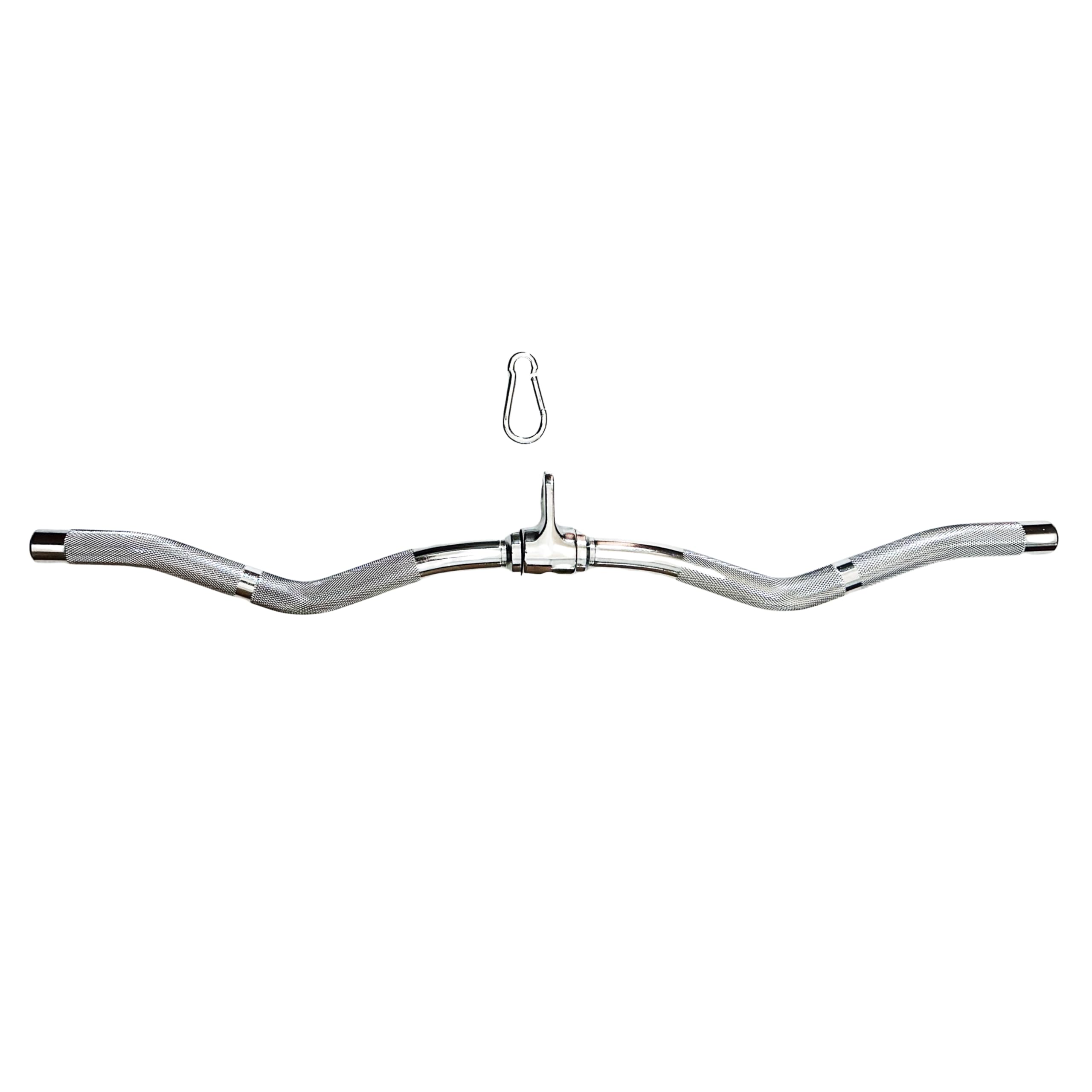 The YUHQC Lat Pull Down bar is great compatible with functional trainer, home gym pulley system, cable machine, cable crossover rowing machine, weight machine, lat pull down machine, squat rack with lat pulldown, cable machine and more. Ideal for performing pull-down actions exercise the lower side of the latissimus dorsi, Arm and waist back muscles. Constructed with high-strength, solid stainless steel with polished chrome coating, features rotating and swiveling center for more sports. Revolving Hanger & Rubber Handgrips, Use environment friendly textured rubber to provide ergonomic and firm grip during your regular routine, as well as to increase comfort and safety. Package Sides & Package Dimensions: 20 Inch(20 x 2.2 x 2.2 inch , weighs 5 lbs), included one carabiner. Perfect dimension provides comfort during your workout, fit well in your palm This LAT Bar attachment is ideal for developing a variety of arm muscles.