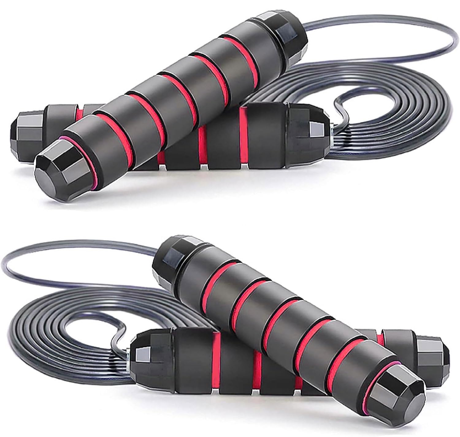 【 Adjustable Length Skipping Rope】: Our jumprope is 9ft long, with convenience length adjustable piston Ring, you can change the rope length according to your height, suitable for different height of men women adults and kids. 【Anti-Slip&Soft Handles Jump Rope】: This Skipping Rope is with two soft handle, made of Anti-slip soft EVA memory Foam material and tangle free ball bearing system, feel more comfortable to hold in hand and soft to load your hand strength.Ball bearing system which is a high speed rope for exercise. 【Fitness & Exercise】: This is Jump ropes for fitness exercise at Home and Gym Workout, cardio endurance and training leg training and endurance training Jumping Exercise, Cross fit, Skipping, MMA, Boxing, speed training, Calves,thigh and forearm strengthening, stamina and speed, improving the muscle tension of your whole body. 【 Light Weight & Heavy Loading Design 】: Most material is Foam, PVC and Plastic, wich give it light weight beautiful body and strong body, fully to load fast speed and heavy body,Speed rope for you. 【 QA & High Quality 】: We use NEW COLORFUL PVC wrapper rope matching the nice Foam material handle, which give you special experience and better feelings when you are using our jump rope to do fitness, indoor, outdoor exercise.