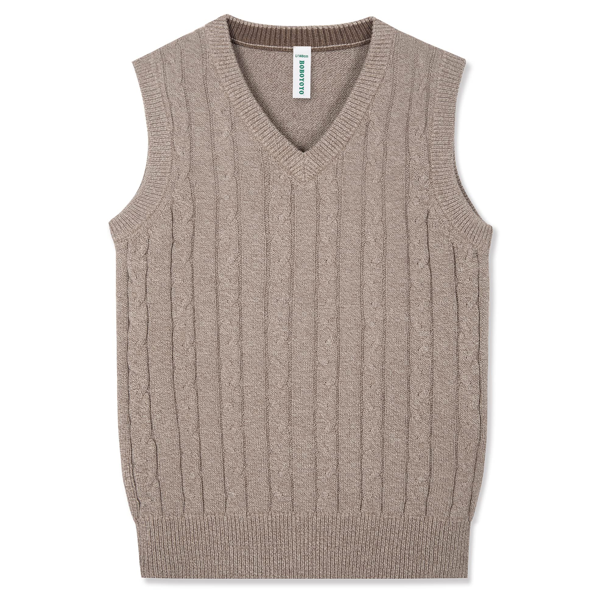 LOOSE STYLE: this kids vest cut to a relaxed fit,slouchy, oh-so-comfy knit! Note: No need to take one size up for your child. Please choose the size according to your kids' height by referring to the size chart carefully! SOFT 100% COTTON: made of premium 100% cotton, the boys sweater vest is ultra soft cozy, lightweight, breathable, skin-friendly and comfortable to wear; No pilling or static electricity. CABLE KNIT DESIGN: with classic cable knit and v-neck design, the vest for boys is well-matched and simple; High quality rib trim at the collar and hem keeps shape and warm CLASSIC UNIFORM: this boys vest can be matched with shirt as school uniform, suitable as inner layer piece in winter or outside clothing in spring and autumn; Ideal for taking photos, church activity, holiday party and Christmas gift EASY CARE: our boboyoyo boys sweater can be washed by hand or machine, without fading, shrinking or deformation; Don’t worry the garment care will take up your much spare time