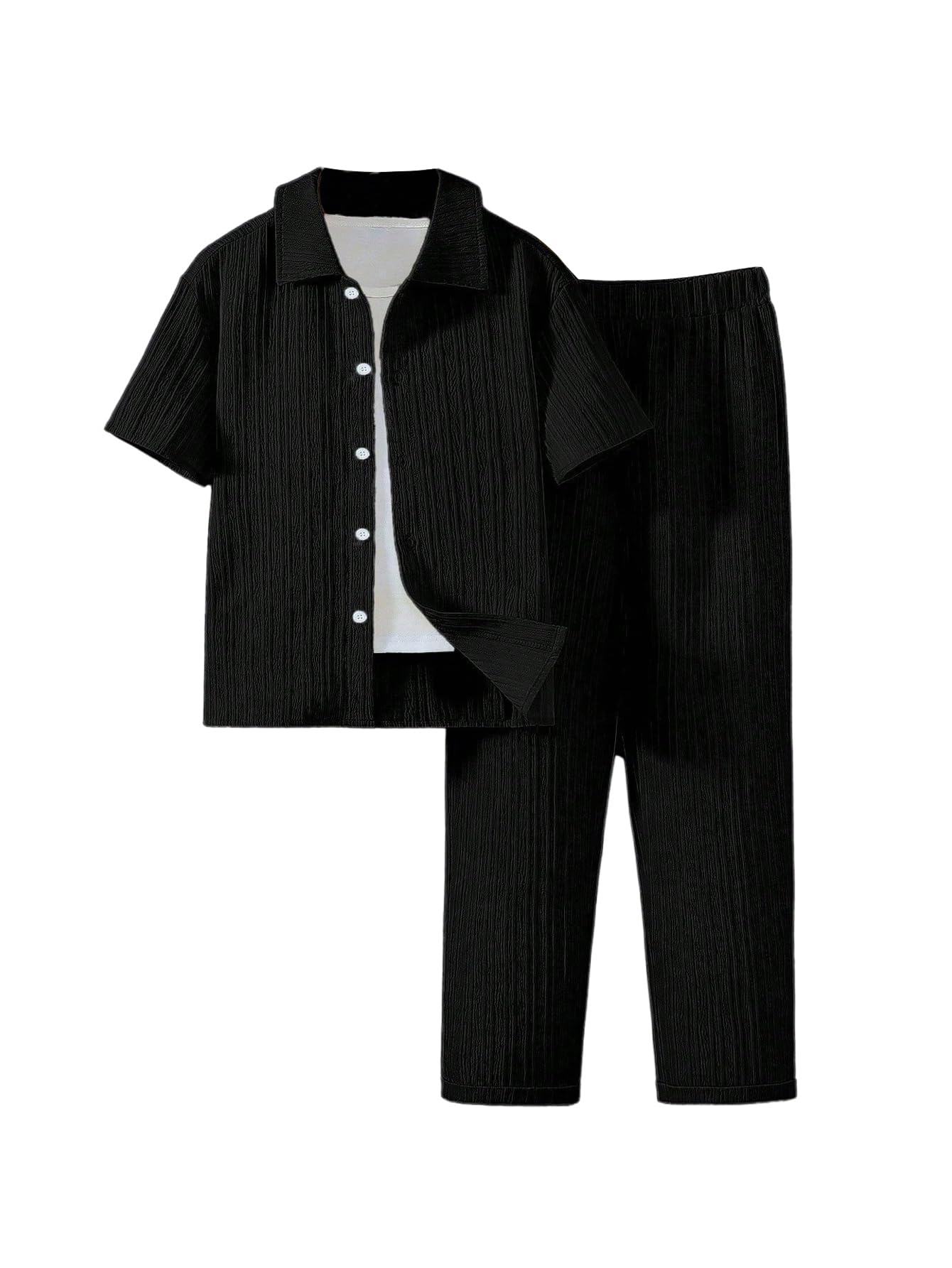 GORGLITTER Boy's 2 Piece Clothing Sets Button Down Collar Neck Shirt and Elastic Waist Pants Set