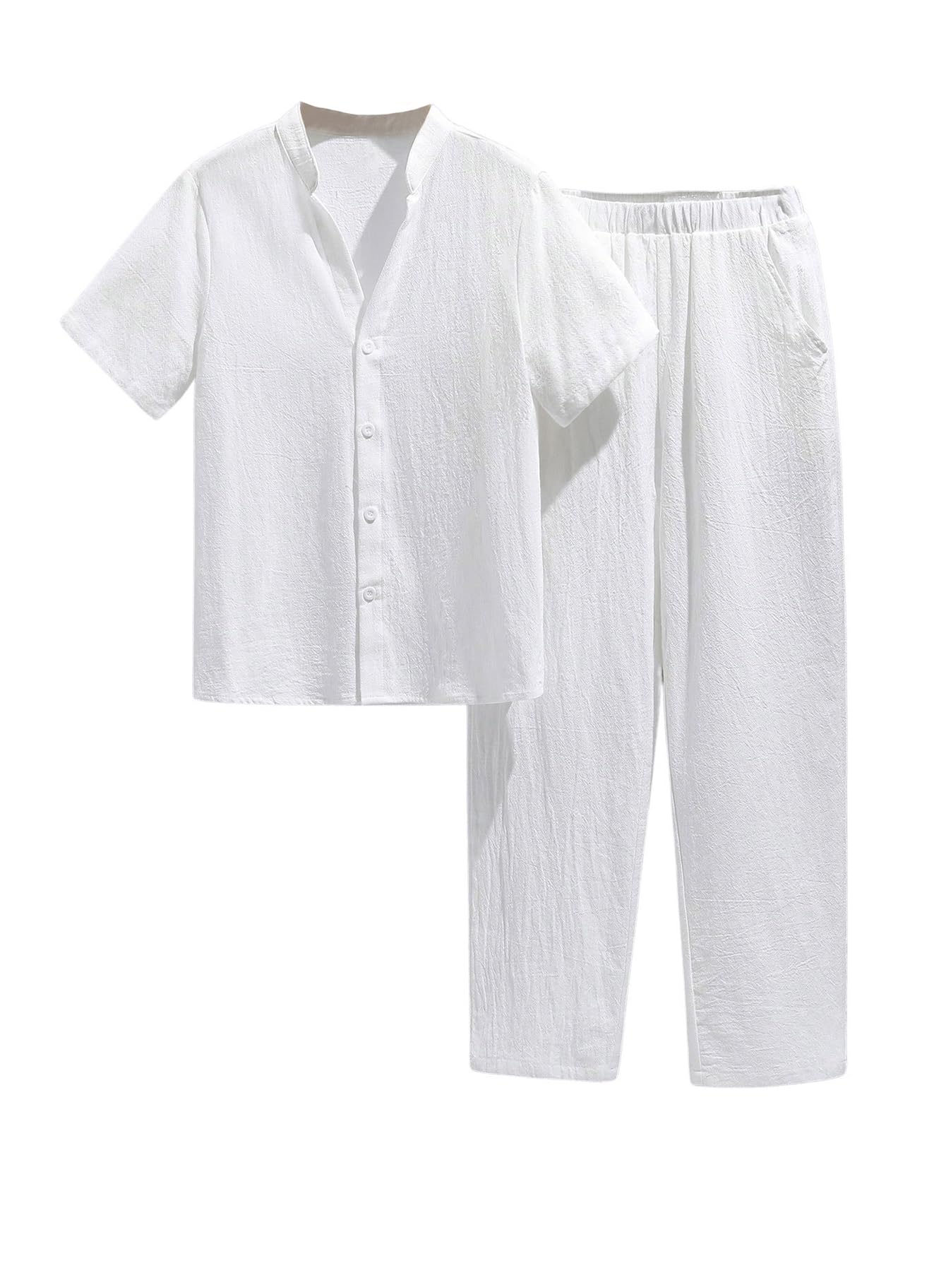 Fabric: It's skin friendly, soft and breathable Design: Short sleeve, collar neck, button down shirt, elastic waist, slant pockets pants, casual style, 2 piece set Occasion: Good choice for weekend, travel, vacation, trip, athletic, sports, casual daily life and more Care Instructions: Machine wash, do not dry clean Please refer to the Item Description below for Size Details.(The item description is clothes size, not body size)