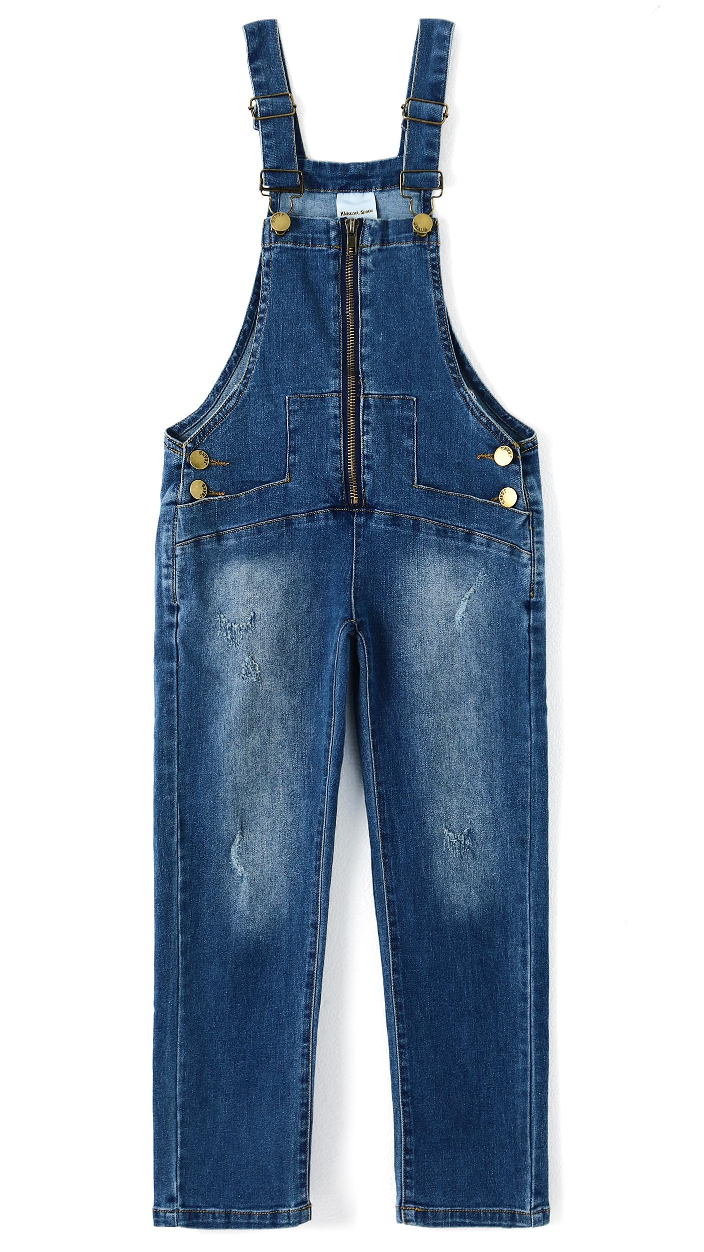 KIDSCOOL SPACE Slim Kid Boy Girl Denim Overalls,Cardigan Style Zipper Front Jeans Dungarees