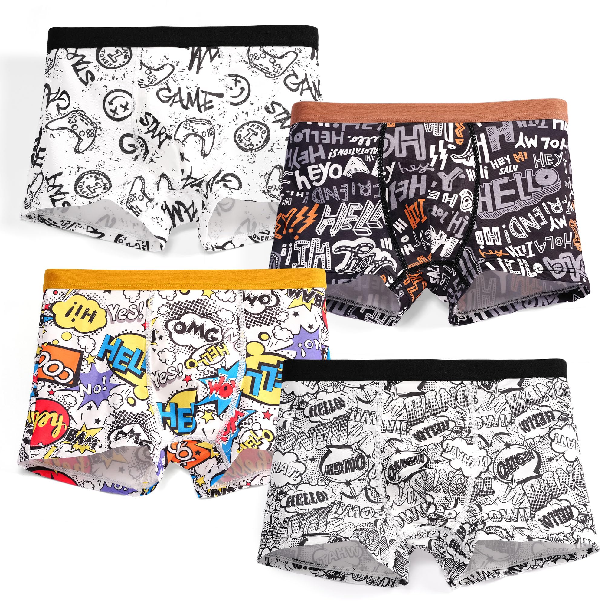 Soft and Comfortable Fabric: Our boys boxers are made of polyamide and spandex, which are soft, breathable and lightweight, providing all-day comfort and fit, ideal for active teens Cooling and Breathable: Our boys boxer briefs are made of a cool-feeling, moisture-wicking material that will keep your child cool and comfortable in the summer. From school to sports, these briefs provide excellent breathability to ensure coolness even during stressful moments and are perfect for a variety of activities Elastic Waistband: The elastic waistband of these boys underwear is super stretchy and soft, which won't leave red marks on your child's skin, allowing them to move more freely. Even if the kids boxers have been washed many times, they won't shrink or get out of shape No-Ride-Up: Say goodbye to the hassle of underwear sticking up. Our boy boxer legs are designed with an elastic feature that won't roll up and fold over, adding comfort to the wearer and ensuring your child stays comfortable during any activity 3D and U-type Design: Our kids boxer shorts are designed with U-shaped double crotch, reasonable crotch depth provides enough room for little boys to grow, and the three-dimensional cut design prevents the underpants from getting caught between the buttocks, perfect for birthday gifts, Christmas gifts, Thanksgiving gifts for your son, grandchildren or other children