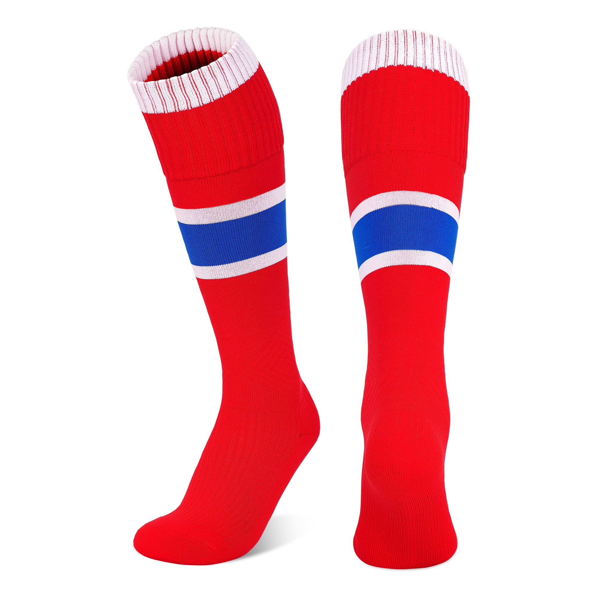 FIT & PROTECTION: Our boy soccer socks are made in a long fit, tightly wrapped around the calf to the knee, which reduces muscle wobble and provides stable support during exercise, these boys knee high socks are suitable for soccer, running and other high-intensity sports, suitable for kids who love sports. THICKENED PADDING: The soles of these soccer socks kids feature thickened padding to enhance friction underfoot and prevent slipping. At the same time, it cushions the impact of landing, reduces exercise fatigue, and improves exercise comfort COMFORTABLE AND BREATHABLE: Our girls soccer socks are made of selected high-quality materials with mesh design, breathable and can absorb sweat and expel it quickly, these kids football socks can keep kids' feet dry and not stuffy for long time sports LONG-TERM USING: our youth soccer socks boys are made of high elastic ribbing process on the cuff and body, which is not easy to be deformed and slipped; the toe and heel of the socks are reinforced, which is friction-resistant, prolonging the service life MULTI-SITUATION APPLICATION: Whether for professional training, competitions, or everyday wear, these football socks kids are suitable for all kinds of activities. They come in two sizes to meet the needs of families or teams