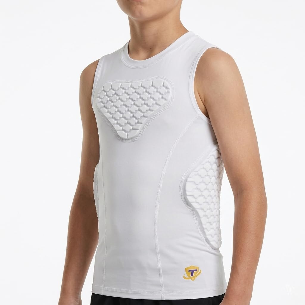 Polyesters+Spandex Made in the USA or Imported Youth Padded Compression Shirt have 11mm professional EVA foam padding integrated with breathable fabric. Youth heartguard shirt freely stretchable, sweat-wicking fabric with smooth touch, moisture wicking and elastic, keep your body cool and dry, offer great flexibility when moving. DGXINJUN padded compression T shirt designed to protect kids body from injury. Effectively protect your child and players shoulders, chest, ribs & lower back in sports activities. Wear either outside or inside, as base layer under sports uniform, perfect for football padded shirt, basketball rib chest protection, baseball, rugby, soccer, softball, skating, snowboarding, skiing, cycling, catchers, goalies, pitching and batting and all other contact sports Fit Chest Size: Small=24-26.5” Medium=26.5-28.5” Large=28.5-30” X-Large=30-32”. If your kids don't like the tighten feeling, please choose a larger size.