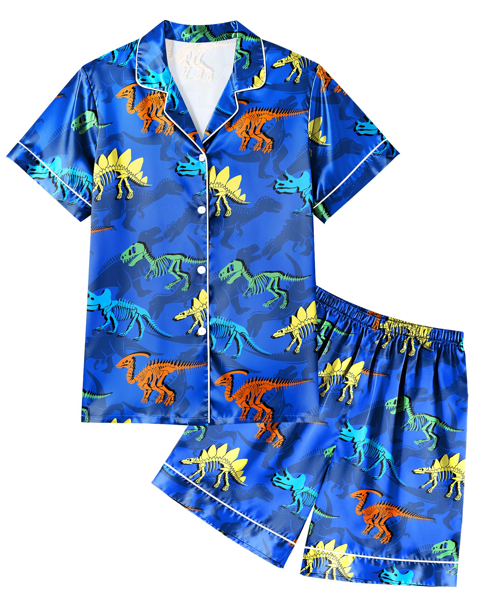 Boys Pajamas Toddler Little Boys Silky Satin Pajamas Button Down Short Sleeve & Shorts Pjs Set Kids Sleepwear 3-10 Years