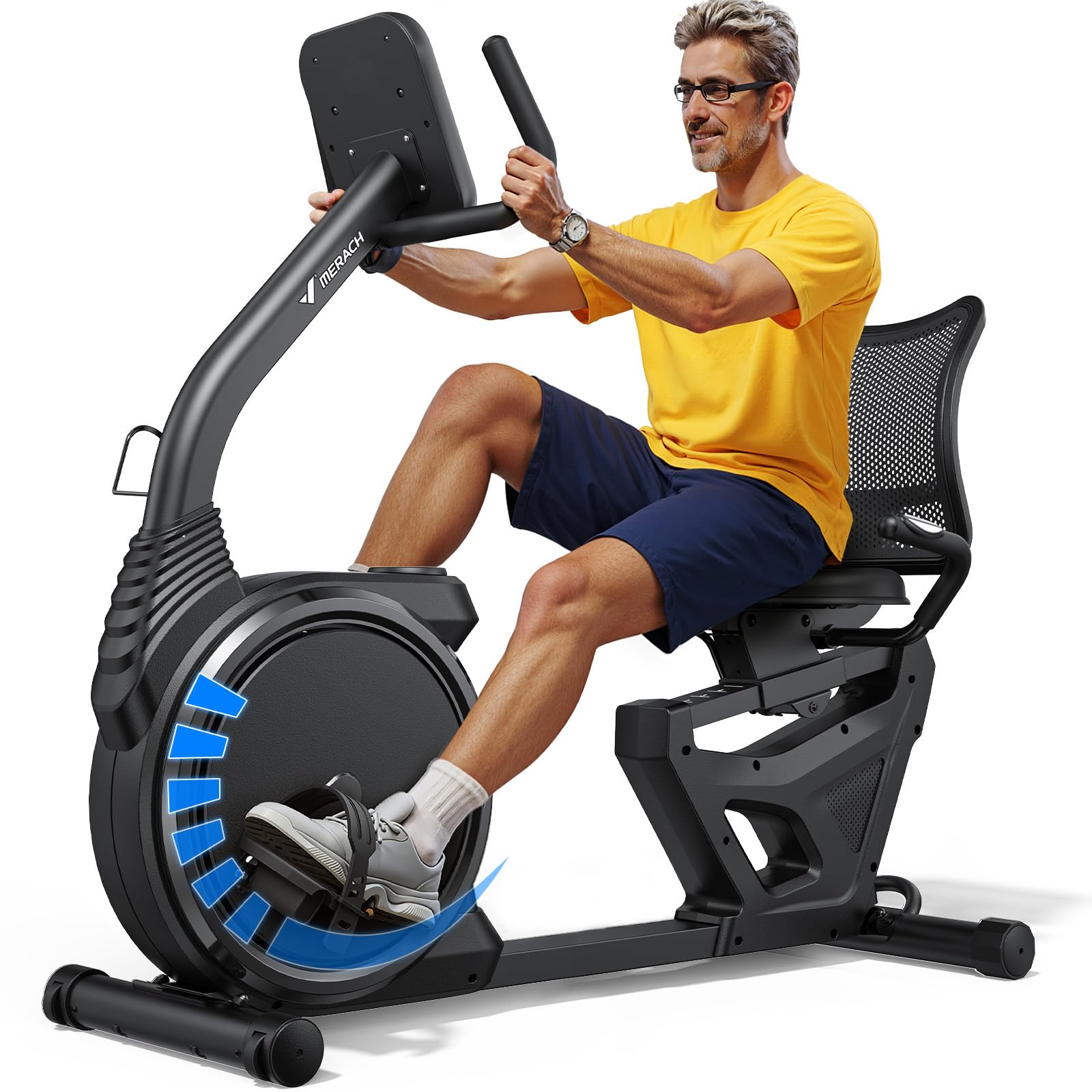 MERACH Recumbent Exercise Bikes for home, Light Commercial High-end Recumbent Bike for Seniors Adults, Magnetic Recumbent Exercise Bike with Smart Bluetooth and Exclusive App, LCD, Heart Rat