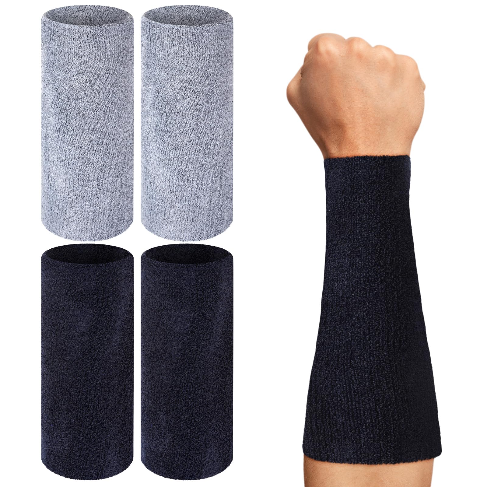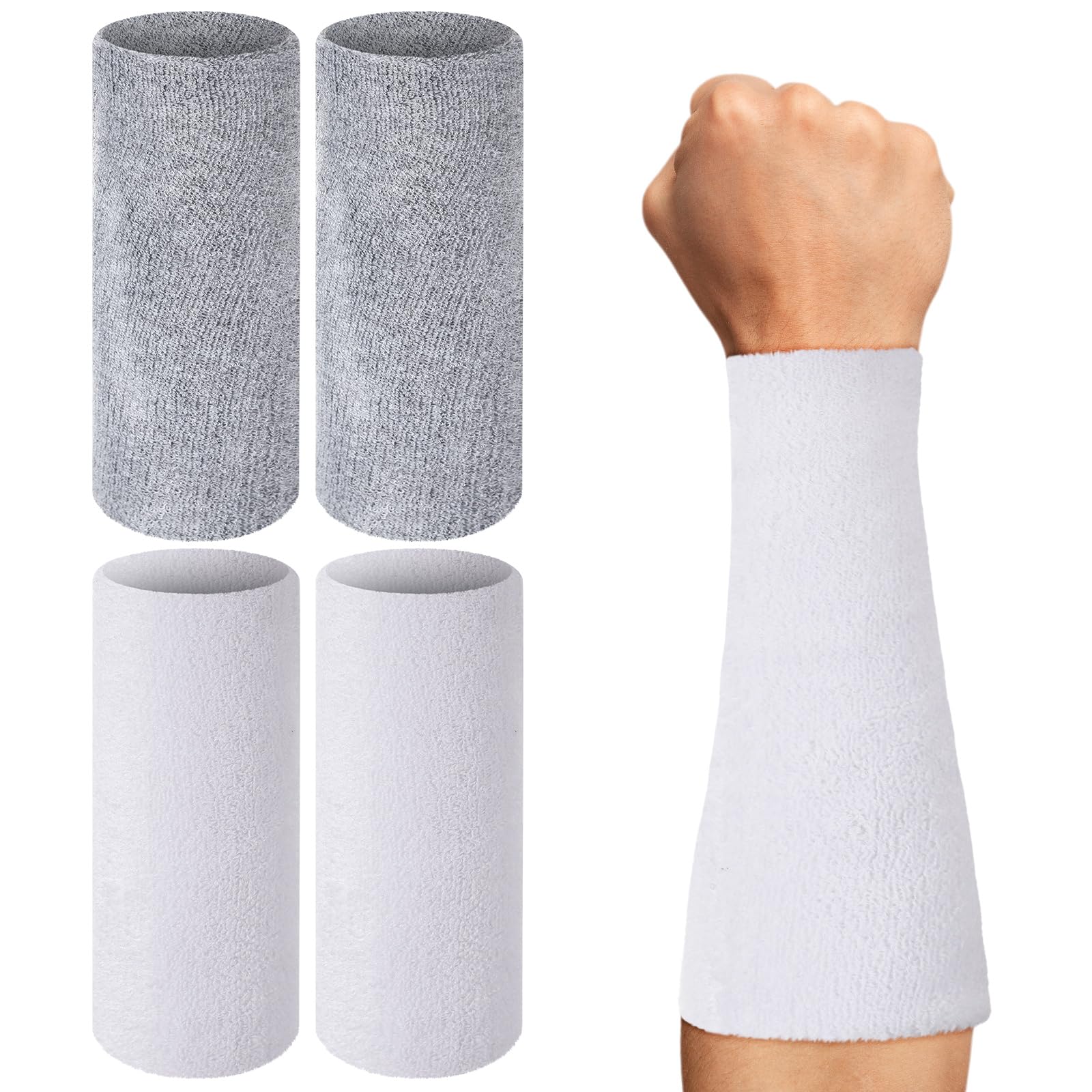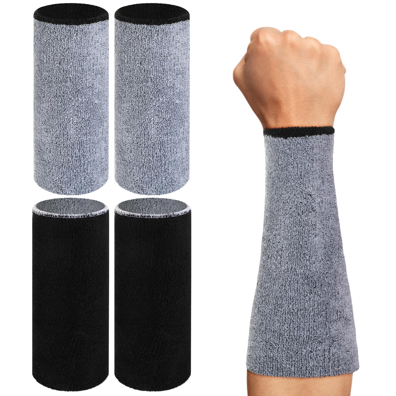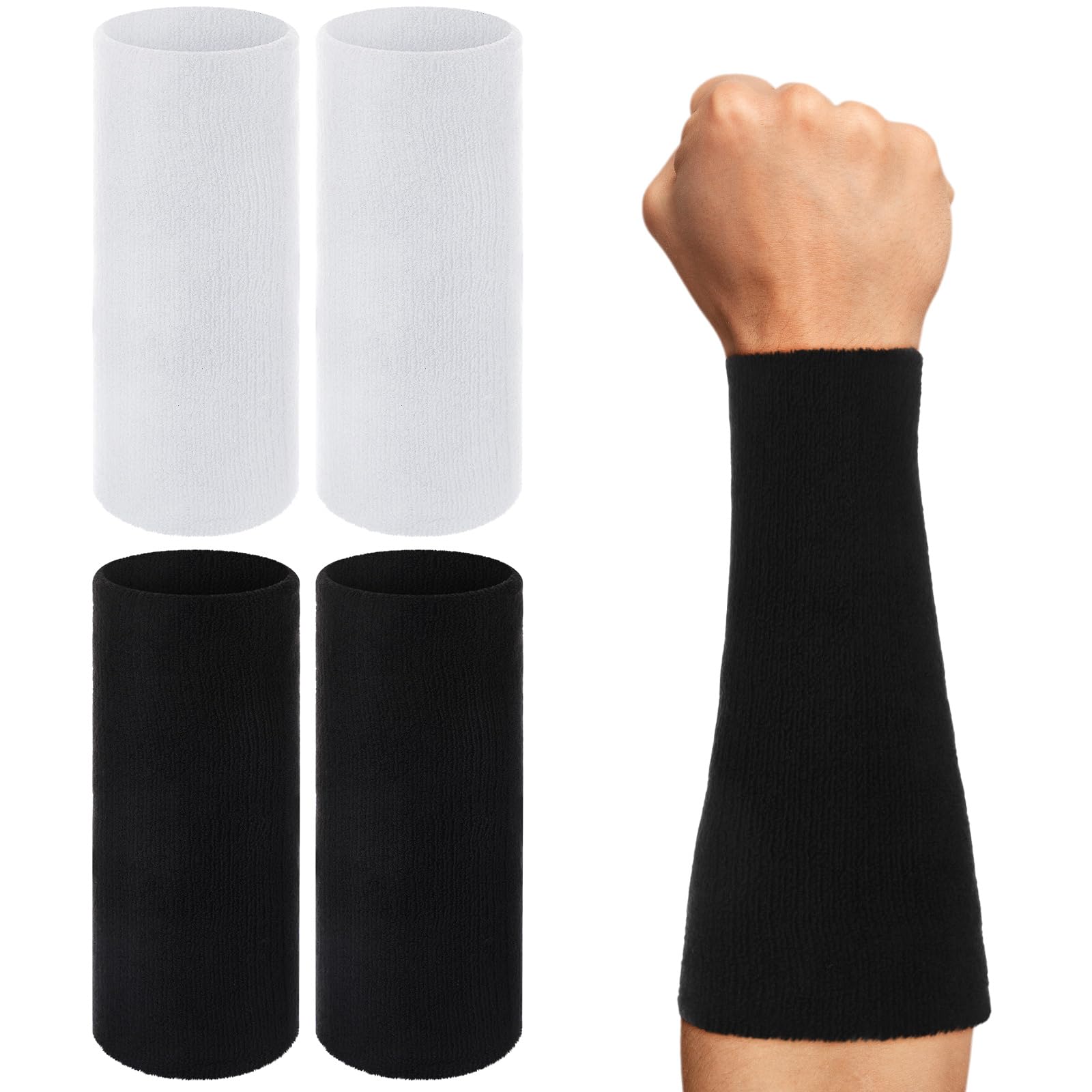 2-Pair Set: this set includes two pairs of sweat wristbands, allowing you to swap out wristbands for high-intensity training or everyday fitness; Available in classic black and white, these wristbands easily coordinate with your workout outfit Comfortable Material: wrist sweat bands is made from 100% polyester and cotton, combining the wear and wrinkle resistance of polyester with the moisture-wicking and breathable properties of cotton; The material offers a moderate stretch to contour to your wrist 9-Inch Extended Design: the wider and longer design of wrist bands for sweat provides more coverage for the wrist and arm, effectively reducing friction and impact during exercise; The snug fit provides comprehensive protection Ideal Gift: sports wristbands are the ideal gift for any sports enthusiast! Whether you're a fitness enthusiast, basketball fan, or outdoor enthusiast, these practical wristbands show your care and attention; Gifting for holidays, birthdays, or anniversaries is a thoughtful gesture Suitable for a Variety of Sports: arm bands wristbands are versatile and can be applied in a variety of sports, including ball games, fitness training, outdoor activities, and everyday leisure; They can absorb sweat, stabilize your wrist, prevent chafing, and more, helping you stay focused during exercise