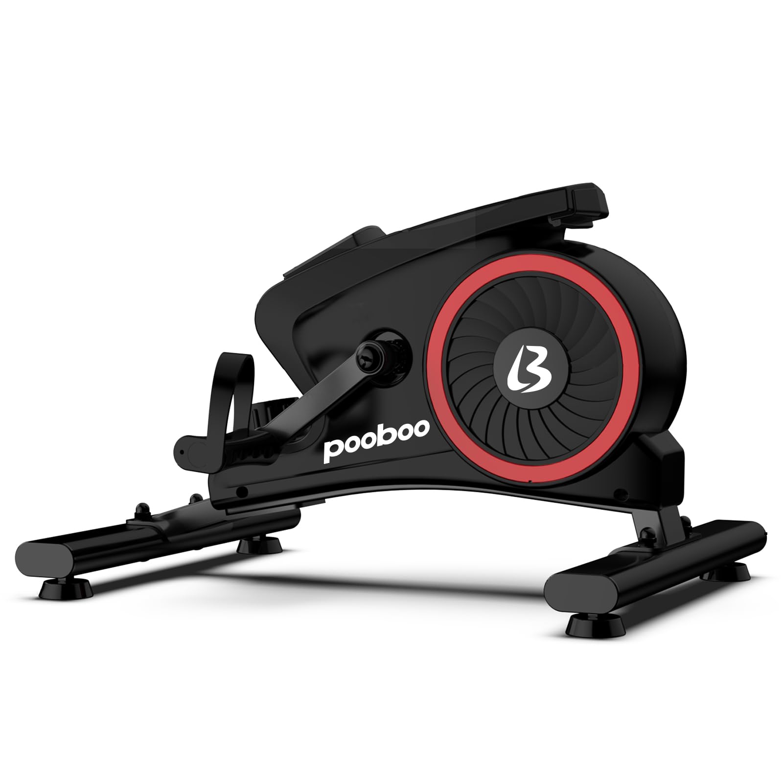 Stay Active Anytime - Compact & Portable Design: Whether working at your desk or relaxing at home, the pooboo under desk bike helps you stay active without taking up much space. Weighing only 18.9 lbs with a built-in handle, this under desk bike is easy to carry and store, making fitness simple and convenient for busy lifestyles. Smooth & Quiet - 16 Levels of Magnetic Resistance: Enjoy personalized training with 16 resistance levels powered by 4 strong magnets. The under desk bike runs silently (<15dB), so you can pedal while attending meetings or watching TV. This mini exercise bike is perfect for calorie burning, senior fitness, or low-impact rehab workouts. Train Both Arms & Legs - Forward & Reverse Pedaling: Unlike ordinary pedal exercisers, the pooboo under desk bike allows both arm and leg workouts. Use it on the floor for lower body training, or on a desk for arms. With forward and reverse pedaling, this under desk bike engages more muscle groups for a full-body workout. Bonus Resistance Bands - Stable & Safe Workout: Maximize results with 2 included resistance bands for simultaneous arm and leg exercises. The pooboo under desk bike comes with adjustable pedal straps, anti-slip foot pads, and a free floor mat, ensuring your mini exercise bike stays secure while protecting your floors. Real-Time Tracking & Great Gift Choice: The LCD monitor tracks time, speed, distance, calories, and ODO, keeping you motivated. The pooboo under desk bike is ideal for weight loss, recovery, or daily activity. This under desk bike also makes a thoughtful gift for parents, grandparents, or professionals, backed by a 1-year warranty for peace of mind.
