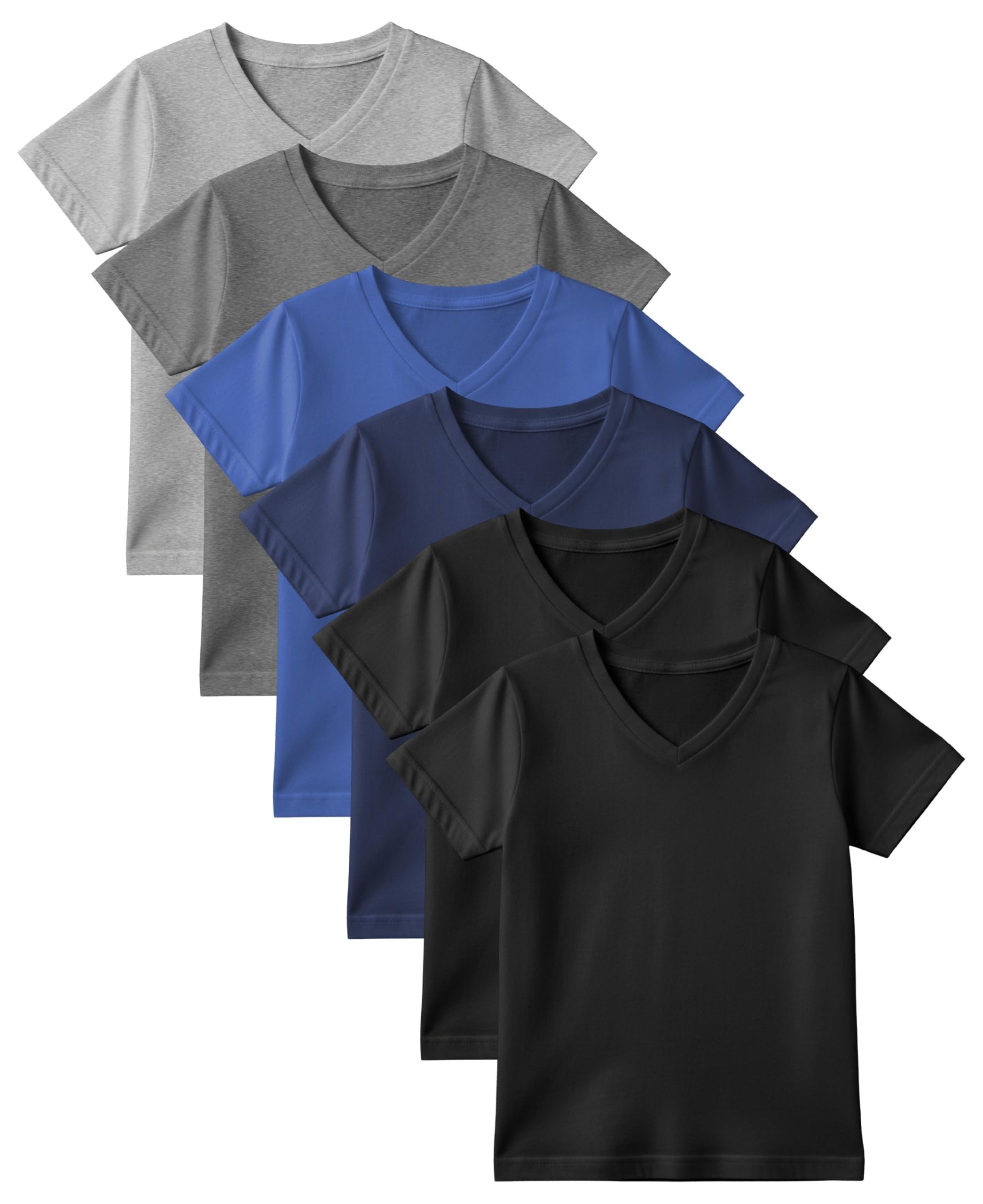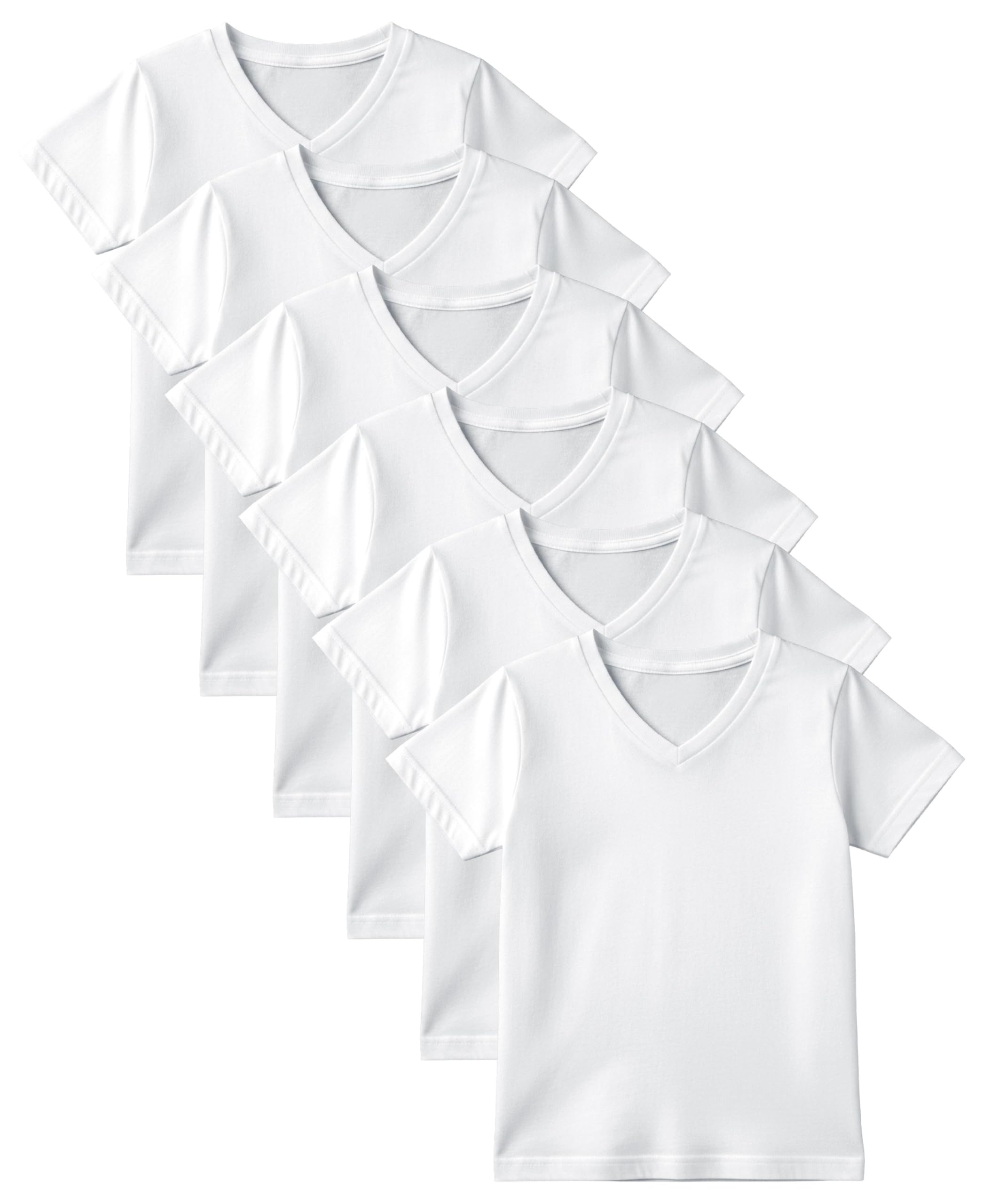 Soft Cotton Fabric: Each shirt is made from a breathable cotton blend that feels soft against the skin and allows for easy movement. The fabric is preshrunk to ensure a consistent, true-to-size fit, even after multiple washes. V-Neck Design: The classic V-neck silhouette offers a modern, stylish look that can be worn on its own or as a comfortable undershirt. The flexible, stay-flat collar maintains its shape wear after wear, so there's no need to worry about it stretching out. Comfortable Fit: These t-shirts feature a generous length and a tag-free design to prevent irritation, making them the ideal choice for kids with sensitive skin. The relaxed fit provides plenty of room for active kids to play freely without feeling restricted. Easy Care: Designed for busy families, these shirts are machine washable and built to last. The durable stitching holds up to frequent washing, ensuring they maintain their quality and shape over time.