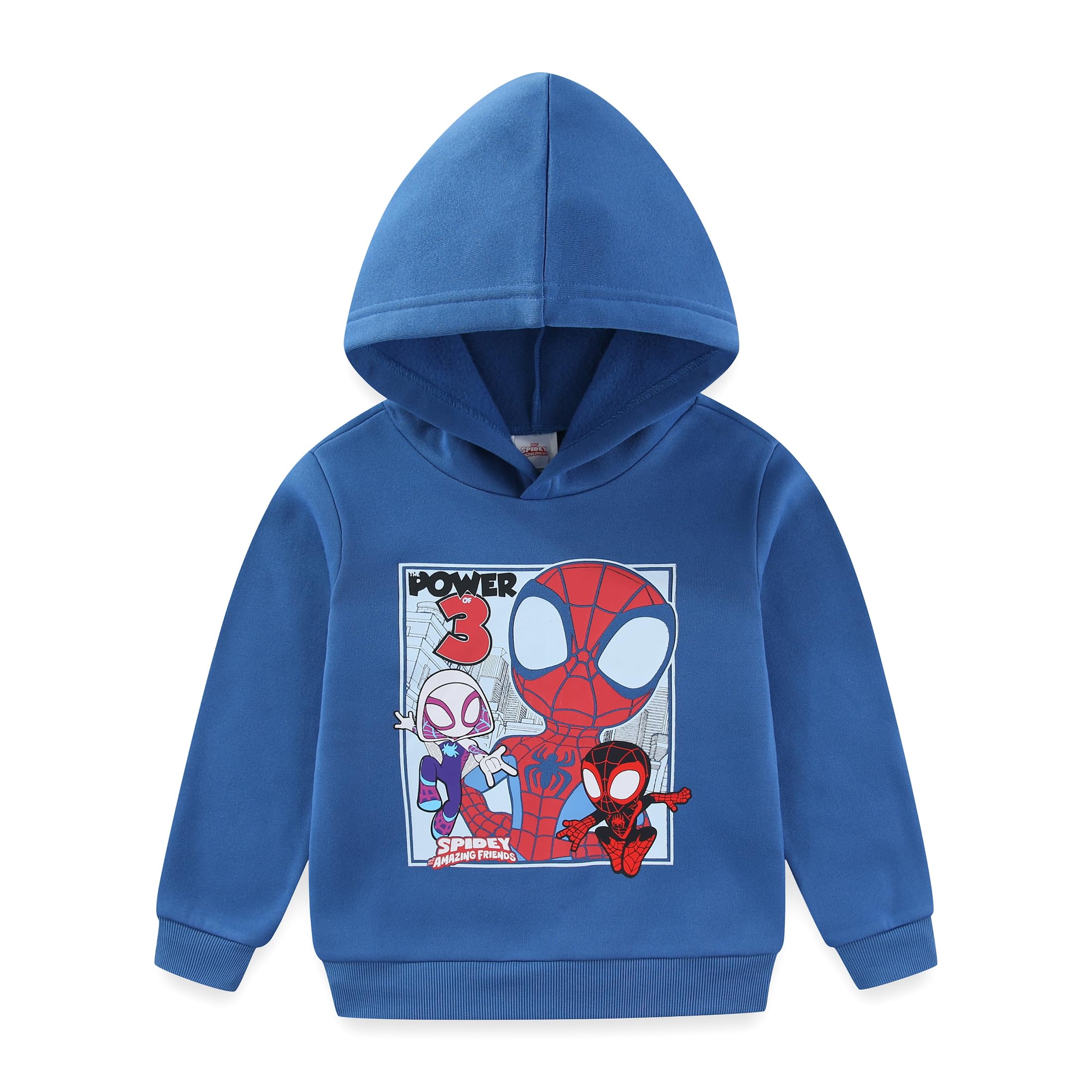 Suit up your little hero in our Officially Licensed Marvel Spidey and His Amazing Friends Boys Pullover Hoodie, featuring fan favorite web-slingers Spidey, Spider-Man Miles Morales, and Ghost-Spider. Features a grey hoodie with Spidey, Miles Morales, and Ghost-Spider design, bringing Marvel superhero action to your little boys wardrobe. The easy pullover design makes dressing quick for parents and fun for kids. Designed for toddler and big kids alike, this Spidey and His Amazing Friends hoodie is available in toddler boy clothing size 3T, and big kid boy clothes sizes 4, 5, 6, and 7. Ideal for school, playdates, birthdays, or for everyday wear. Made from soft, breathable, and durable fabric, this Spider-Man hoodie provides all day comfort and cozy warmth. It is also machine washable for easy, worry free cleanup after action packed days. Let your little boy channel their inner hero, pair it with Spider-Man shoes, Spider-Man backpack, Spider-Man socks, Spider-Man accessories, or other Spidey and His Amazing Friends clothes to complete the ultimate hero look.