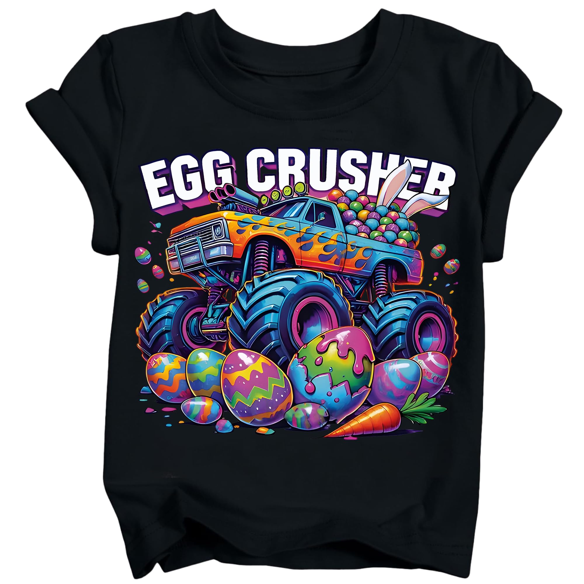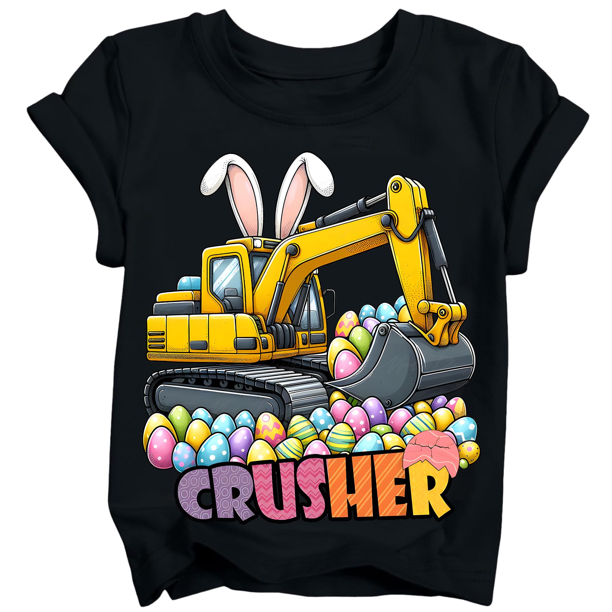 Material: Toddler Easter shirts are made of high-quality cotton-blend fabric with stretch. Super soft against the skin, breathable, and lightweight, keeping your little one comfy all day long during egg hunts, parties, and daily wear Specs: Funny kids Easter tees with soft short sleeves, timeless crew neck, relaxed fit. Designed for boys, decorated with fun holiday lettering and delightful Easter-themed accents, adding a playful, festive flair to any little one’s look Prints: Our boys' Easter tees showcase playful, kid-approved prints: an excavator with bunny ears, a monster truck crushing eggs, and a cool chick on a skateboard, all designed to make holiday moments extra special Occasions: Designed for Easter, these toddler boy tees are ideal for Easter egg hunts, spring photo shoots, classroom parties, playdates, and cheerful holiday vibes. They also make a great gift for your little one’s special spring day Care & Sizing: Machine washable; for optimal results, hand-wash gently in cold water. Avoid bleaching or hot water washes. Size up if your child falls between two sizes