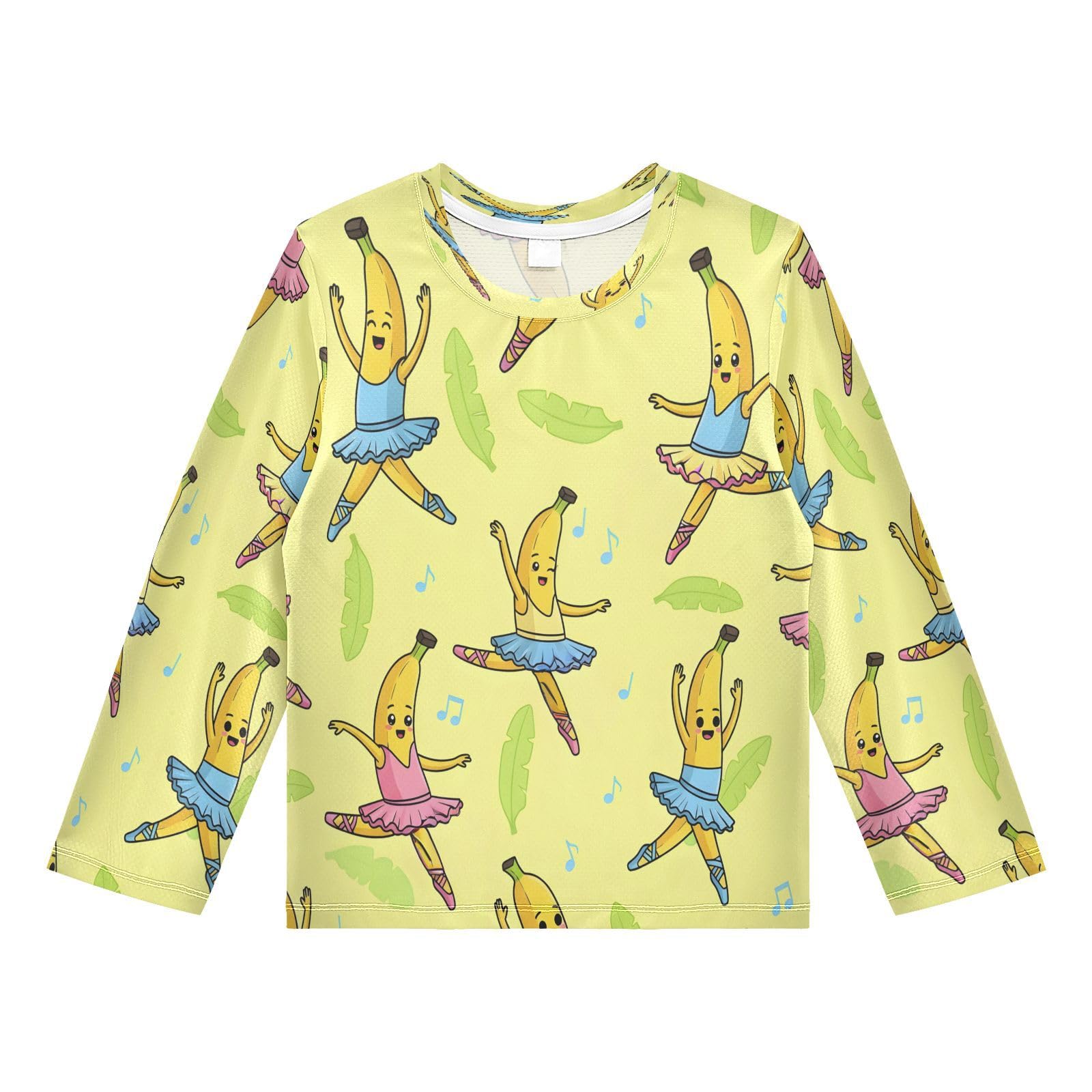 Boys Rash Guard Long Sleeve UPF 50+ Boys Swim Shirt Quick Dry Shirt for 3-12 Years,Banana Ballerinas Dancing Music
