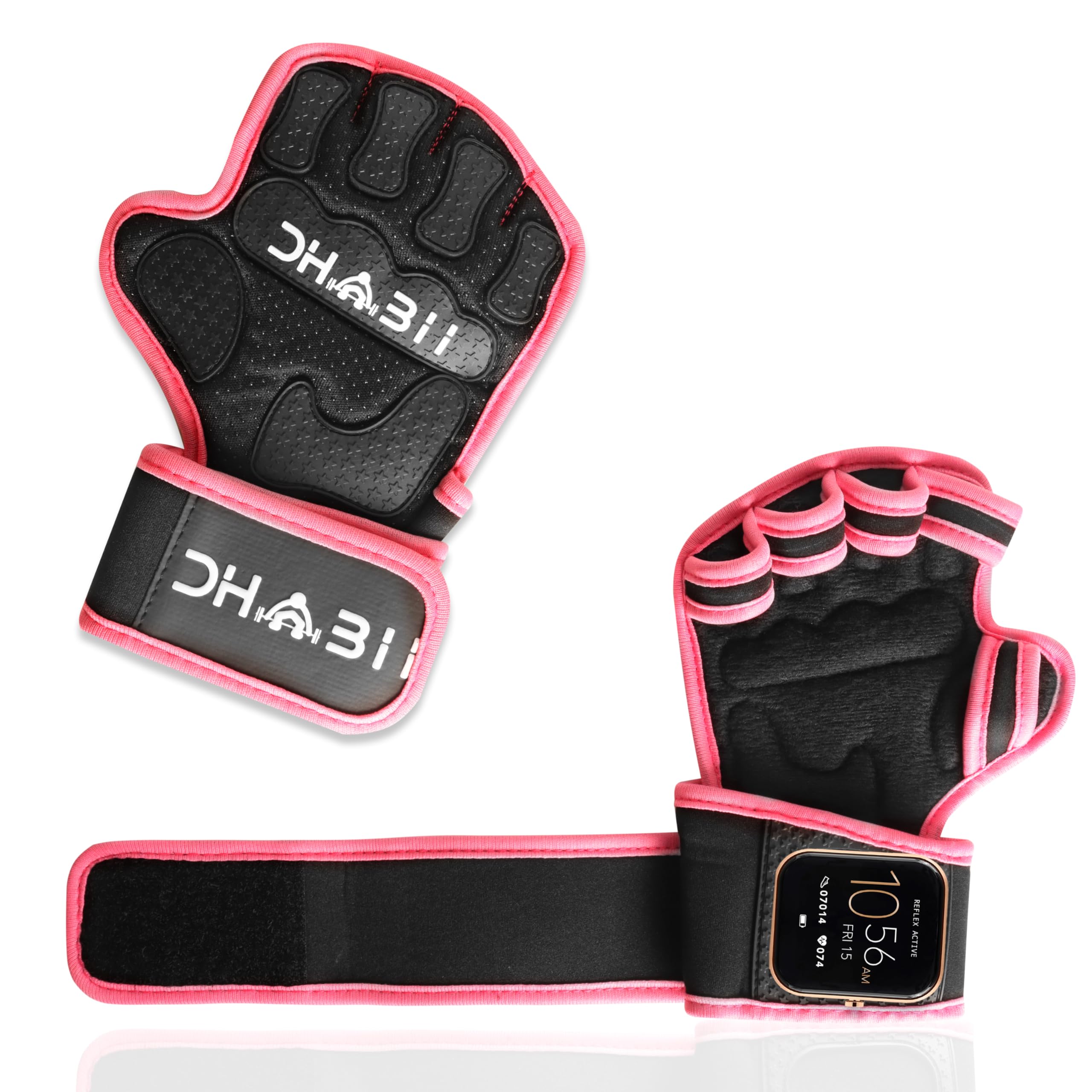 Smart Watch Compatibility – Enjoy the convenience of tracking your fitness goals while you train with these workout gloves women. Specially designed to work seamlessly with smart watches, allowing easy access and smooth interaction without interference. Stay connected, motivated, and fully focused during every workout, helping you track progress in real time while maintaining perfect workout flow and consistent performance. Smart Watch Protection – Keep Your Device Safe & Scratch- Free – Intense workouts often cause scratches, friction, and pressure on smart watches. The cushioned protection zone around the wrist helps shield your device from rubbing, impact, and sweat buildup, keeping it safe, secure, and protected. Train confidently with Dhabii gym gloves for women knowing your watch stays in excellent condition through heavy lifting and intense gym sessions. Rubber Grip for Pull-Ups – Strong Hold, Zero Slipping – Slippery bars lead to poor grip, hand fatigue, and unsafe workouts. But our gym gloves for men have High-traction rubber grip zones provide a strong, non-slip hold for pull-ups, deadlifts, kettlebells, and bar training. Enjoy improved control, enhanced stability, and greater lifting confidence with weight lifting gloves for women so you can complete every rep safely and effectively. Ventilated Open-Hand Design – Cool, Dry & Comfortable – Sweaty hands cause discomfort, irritation, and unpleasant Odors during exercise. These weight lifting gloves for men have open-hand ventilated design allows natural airflow across your palms and fingers, keeping hands cool, dry, and fresh. Experience lasting comfort during long gym sessions, intense training routines, and high-performance workouts without distraction. Versatile Use – One Pair for Every Workout Style – Dhabii weightlifting gloves Designed for gym workouts, weightlifting, CrossFit, cycling, rowing, pull-ups, functional fitness, and outdoor training. These versatile exercise gloves eliminate the need for multiple pairs, providing reliable grip, protection, and comfort across every workout style, making it the perfect all-in-one solution for your complete training routine.