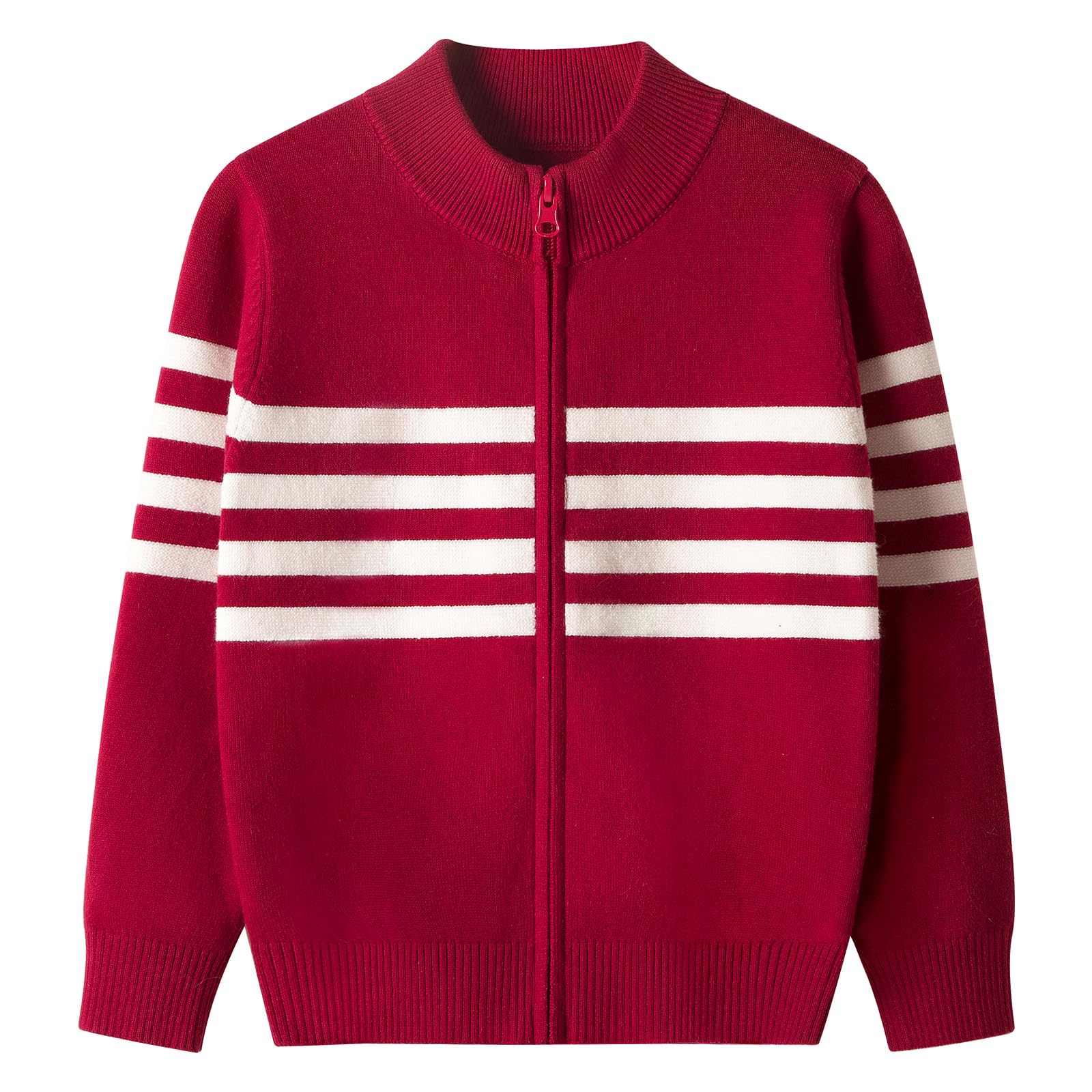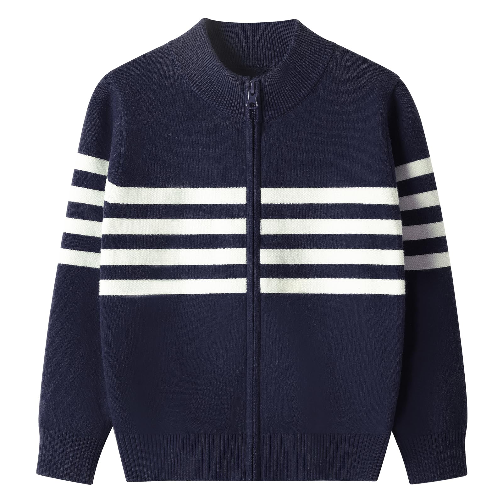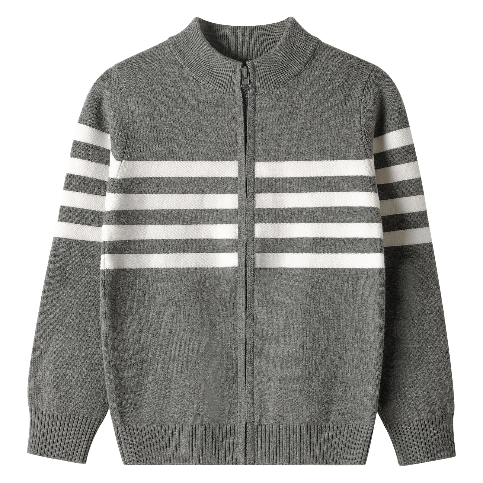 Danny D Boys Striped Full Zip Long Sleeve Cardigan Children's Striped Knit Casual Cardigan Sweater Tops Jacket