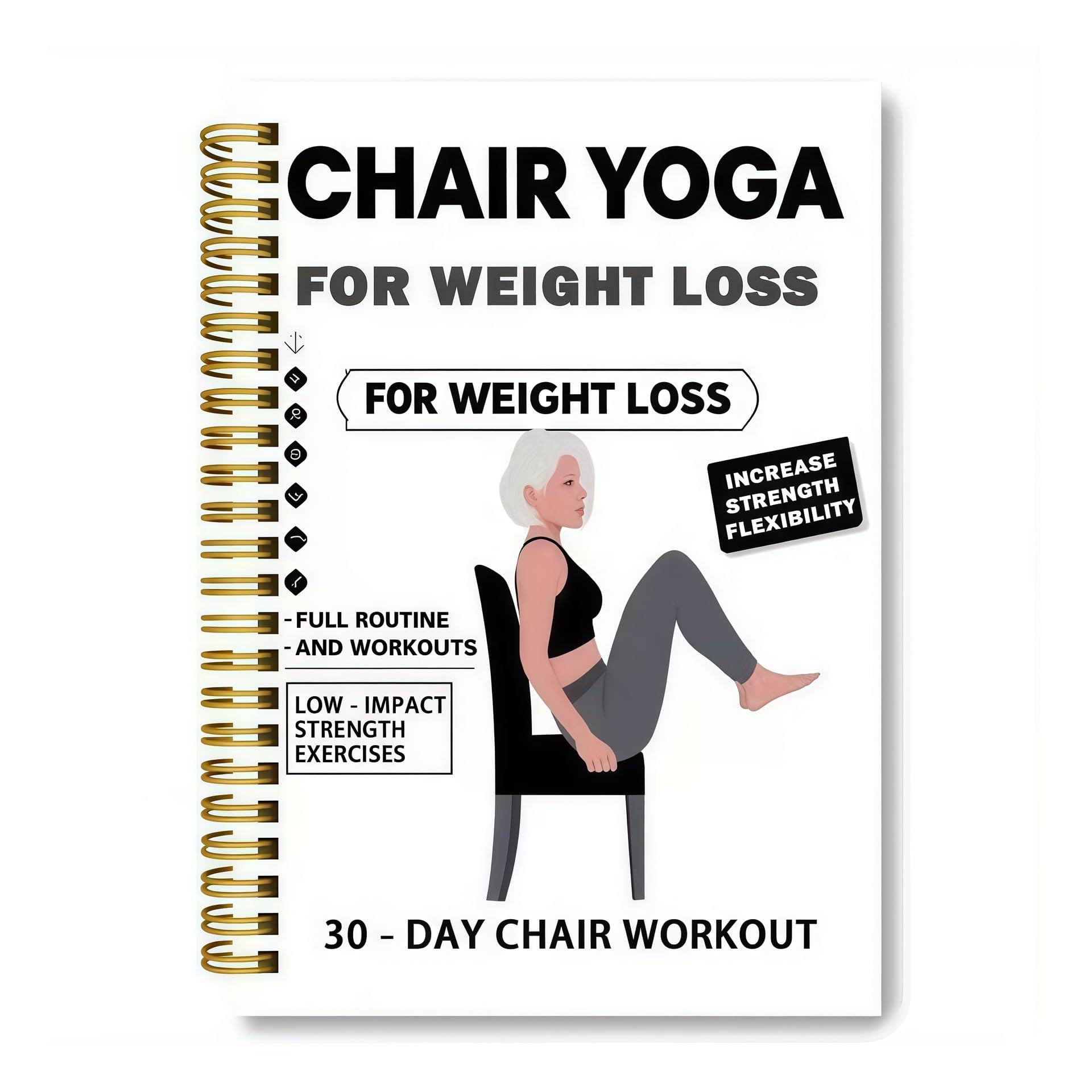 Tailored Chair Yoga for Weight Loss - Specifically designed for seniors seeking safe weight management, our 66-page guide features gentle chair yoga sequences that improve metabolism and support healthy weight loss without strenuous movements Comprehensive Senior-Friendly Layout - Each of the 66 beautifully illustrated pages demonstrates modified yoga poses with clear instructions, ensuring easy follow-along while seated - perfect for beginners and those with mobility concerns Daily Progress Tracking System - Includes dedicated sections for recording daily achievements, weight loss milestones, and personal notes, creating motivation through visible progress in your chair yoga weight loss journey Premium Spiral-Bound Construction - Features durable coil binding that lays completely flat during use, combined with high-quality paper that withstands frequent handling, making this the perfect long-lasting fitness companion Thoughtful Gift-Ready Presentation - Expertly packaged and ideal for gifting to aging parents, grandparents, or friends beginning their fitness journey, this chair yoga for weight loss planner shows care for their health and wellbeing