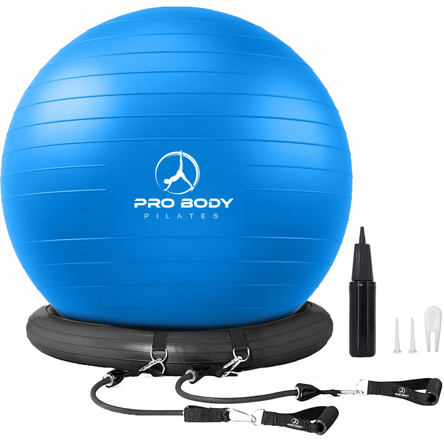 FULL BODY WORKOUT with this versatile chair ball with stability base and optional resistance bands. Consider as a yoga ball chair for pregnancy, or as an exercise ball chair for office. HIGHLY RECOMMENDED to increase abdominal strength. Great for active sitting as an excersize ball chair for office or home. The stability ball chair for office is also for labor and postpartum recovery SETUP QUICKLY WITH QUICK PUMP - The office chair ball is inflated in minutes. Get focused on your core immediately with exercise balls for working out. Exercise ball base secures the desk ball. INCLUDES: Birthing Ball, Exercise Ball Stand, Optional 2 Resistance Bands, Inflation Pump, 2 sets of plugs with remover and manual with exercises. The balance ball chair for office is made from low-odor PVC material free of harmful chemicals. WE STAND BEHIND OUR BALL DESK CHAIR - Should the physioball burst we support you for the life of the balance chair. Intended primarily as a sitting ball for desk or stability ball chair for classroom.