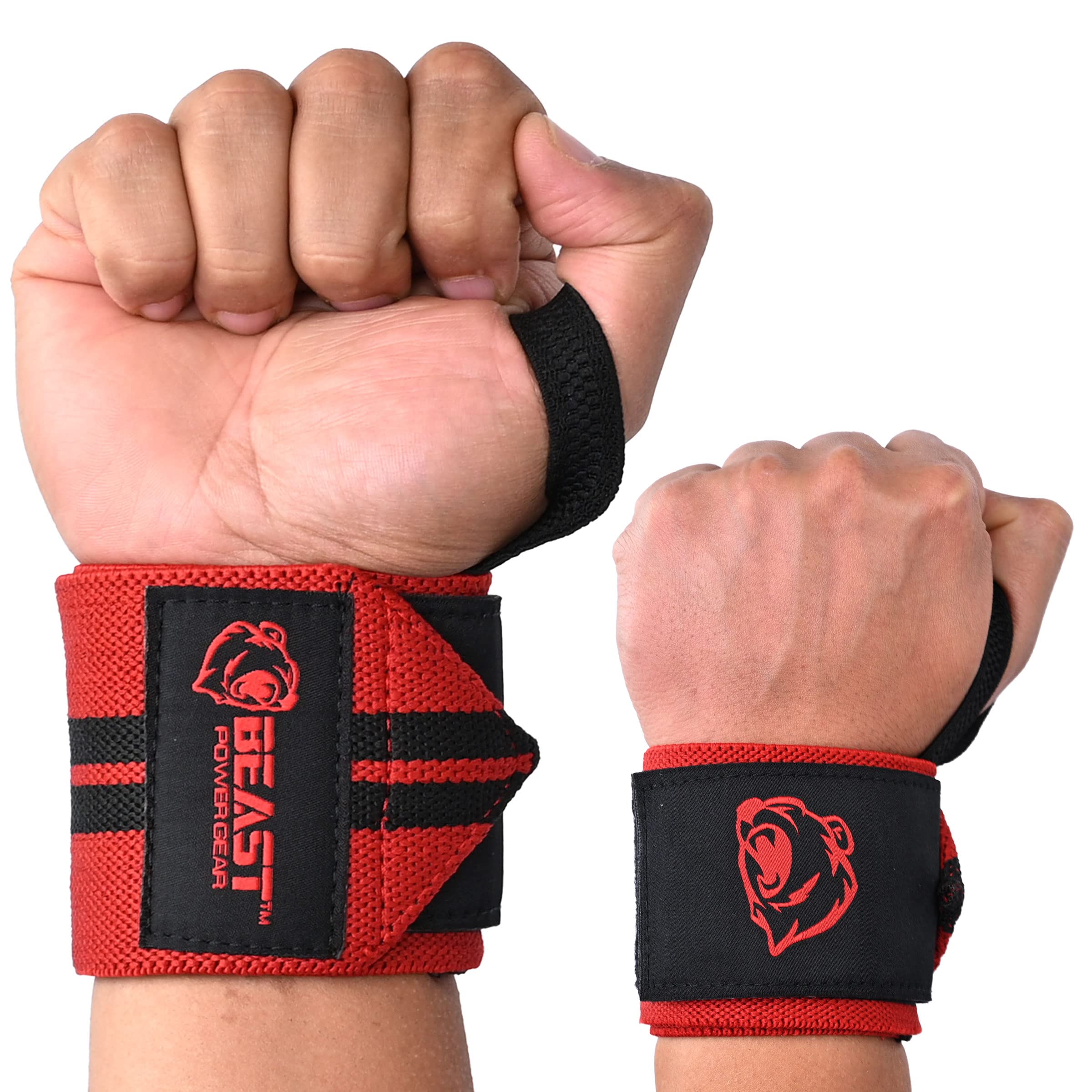 Beast Power Gear Wrist Wraps for Weightlifting 18” Premium Quality Wrist Support for Bodybuilding Heavy Duty Thumb Loop Powerlifting, Strength Training for Men and Women