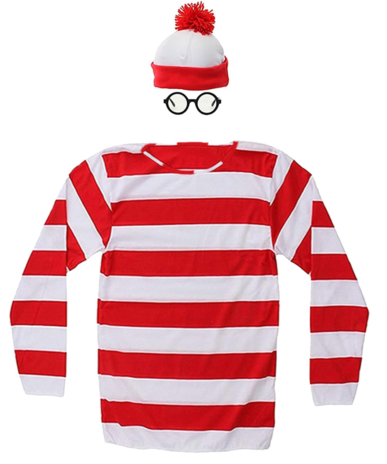 Red and White Striped Shirt Adult Men's Halloween Costumes,Funny Sweatshirt Outfit Glasses Suits