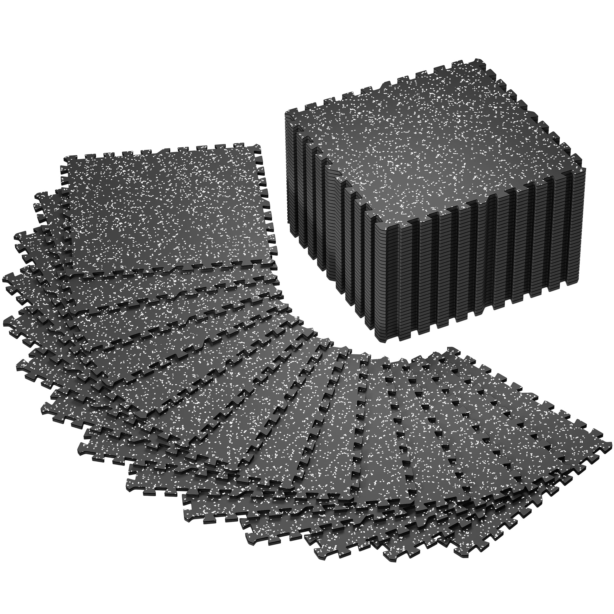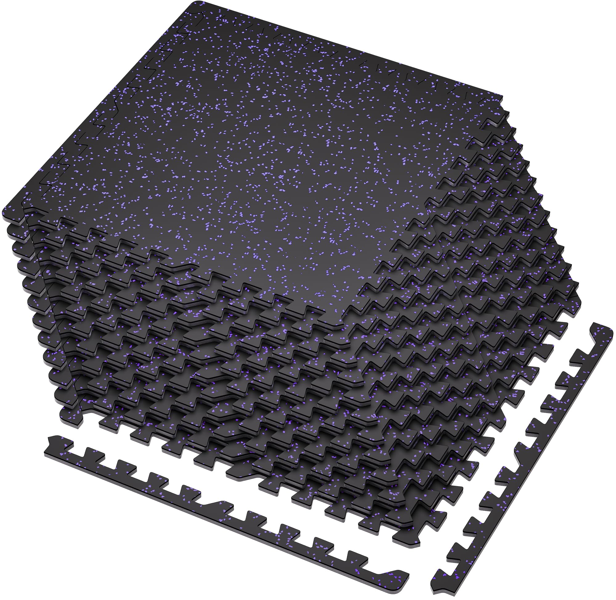 SUPERJARE 0.4'' Thick 24 Pcs 96 Sq Ft Rubber Top Exercise Equipment Mats, High Density EVA Foam Mats with Rubber Top, Interlocking Gym Flooring for Home Gym, Protective Workout Mat, Black/Pu