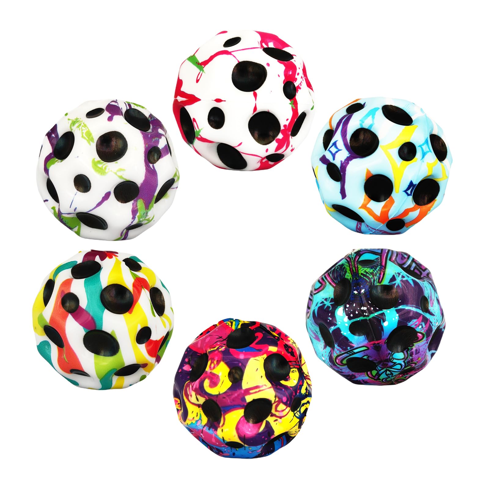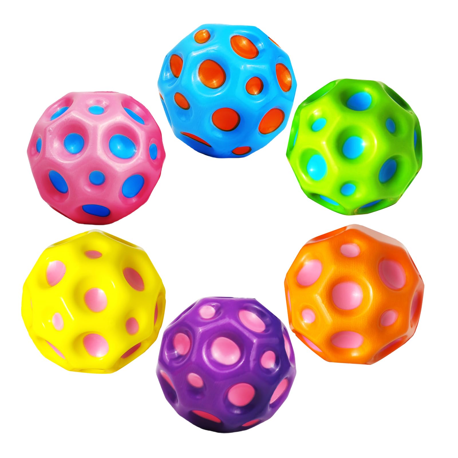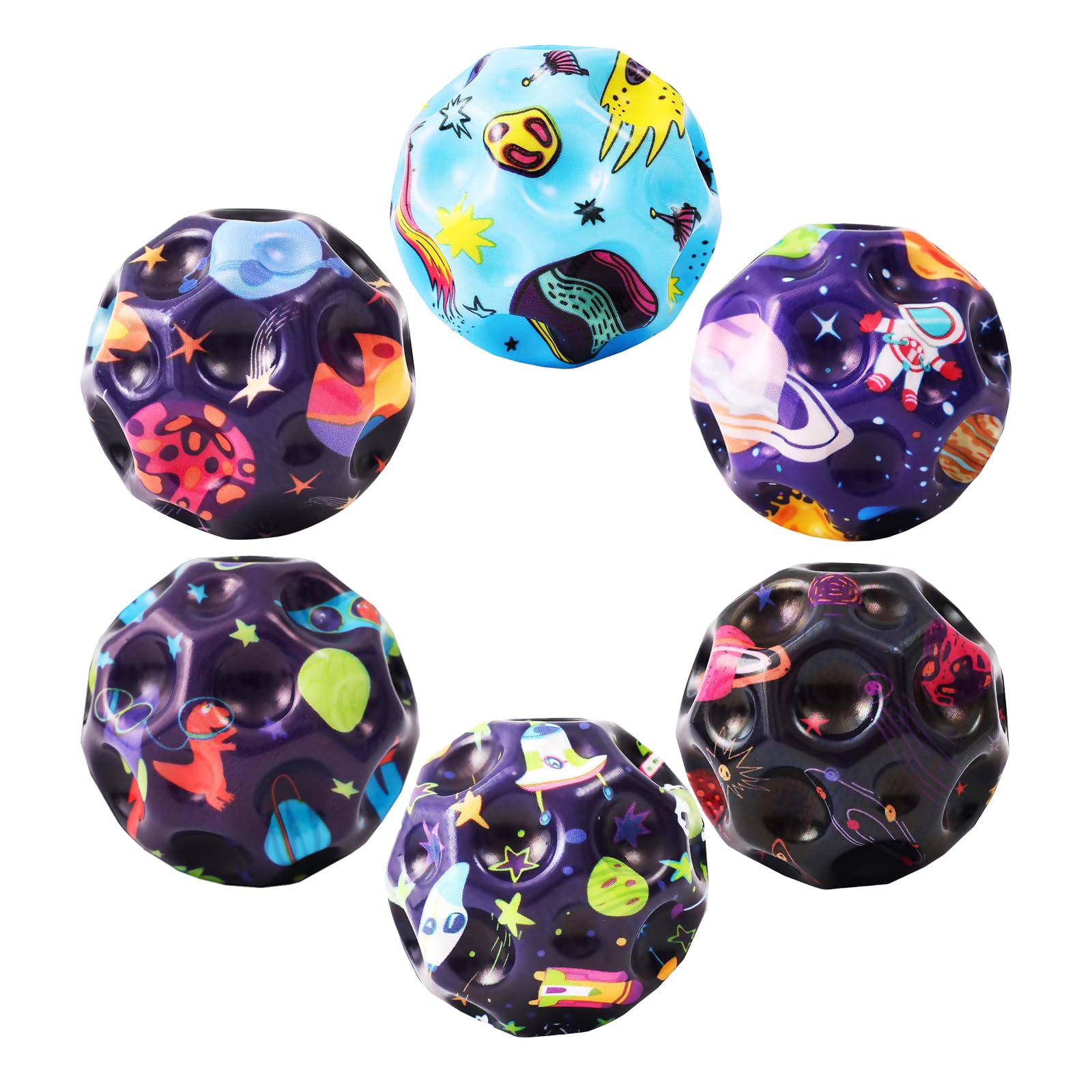 【Super astro ball】The children's bouncy ball is made of high-quality, strong elastic material. Jump ball are the bounciest super bouncy balls on the market. The super high bouncy ball can jump dozens of meters when it hits the hard ground. The bouncer ball feels as if it had been catapulted far into space. Galaxy balls also have bright colors, making them easy to spot even when they bounce high and far. [Unique decompression sound] The astro bubble ball produces a unique and rich sound when it hits the hard ground. Super bouncy ball sound effects add extra fun to the bouncy ball experience. With the illuminated astro jump ball, you can hit the ball at home, outdoors, on the playground, or on the lawn. Especially when you hit the Galaxy Balls on a hard surface like cement, they will bounce higher and further. [Starry Sky Design] The surface of the foam ball for kids is designed with planet-like indentations, making the sky ball easy to grip and catch. At the same time, the playground ball helps improve hand-eye coordination and the jumping ball can also be used by athletes as a sports training ball. This is also a great sensory ball for children. 【Play Anywhere】The diameter of the foam ball is about 2.7 inches, the children's ball is made of strong, lightweight, highly elastic PU material, the weight is about 0.2 pounds, not bulky, lightweight and easy to carry . With its amazing bounce height and durability, the jump ball for kids is suitable for exercise purposes and various indoor and outdoor sports games. Can be used as a good playground ball and jumping ball. 【Great Gift】Say goodbye to small bouncy balls and old jumbo balls. The ultra-high elasticity ball is suitable for people of all ages, from toddlers to children to adults. Even your dogs and cats will like this new baby sensory ball. Of course, the dog is allowed to chew this pet ball when he is excited. The super bouncy ball is ideal as a reward gift for children's days, birthday parties, Christmas or in the classroom.