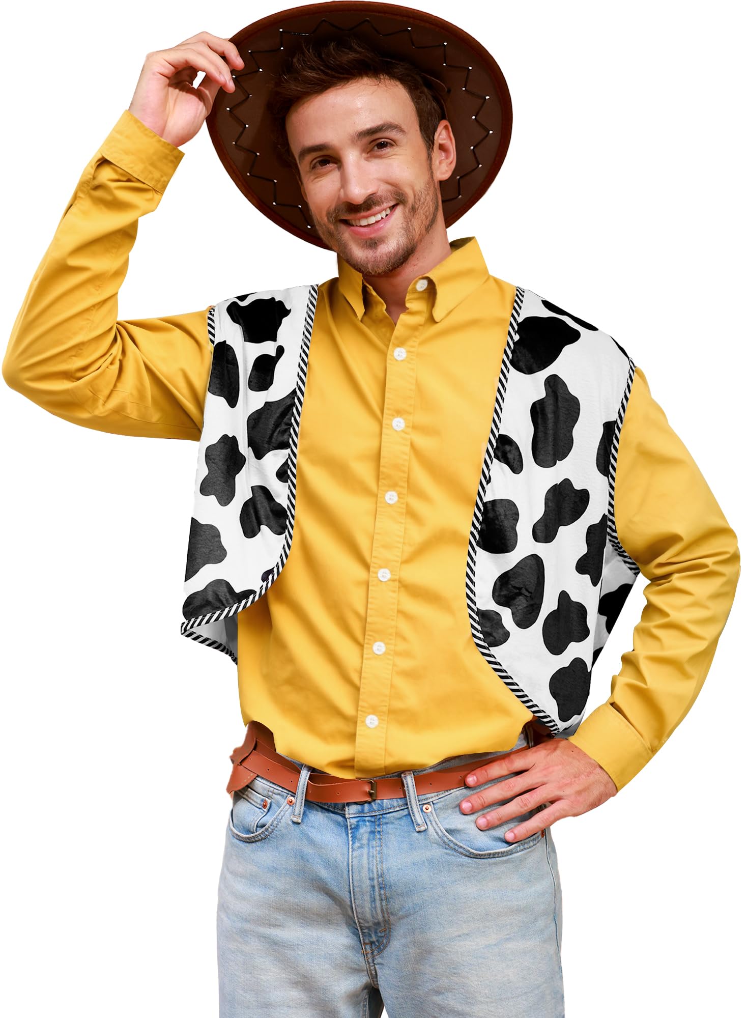 Arvilhill Men's Cow Print Vest 3 Pcs Halloween Adult Cowboy Woody Costume Outfit Vest Scarf Badge (S-3XL)