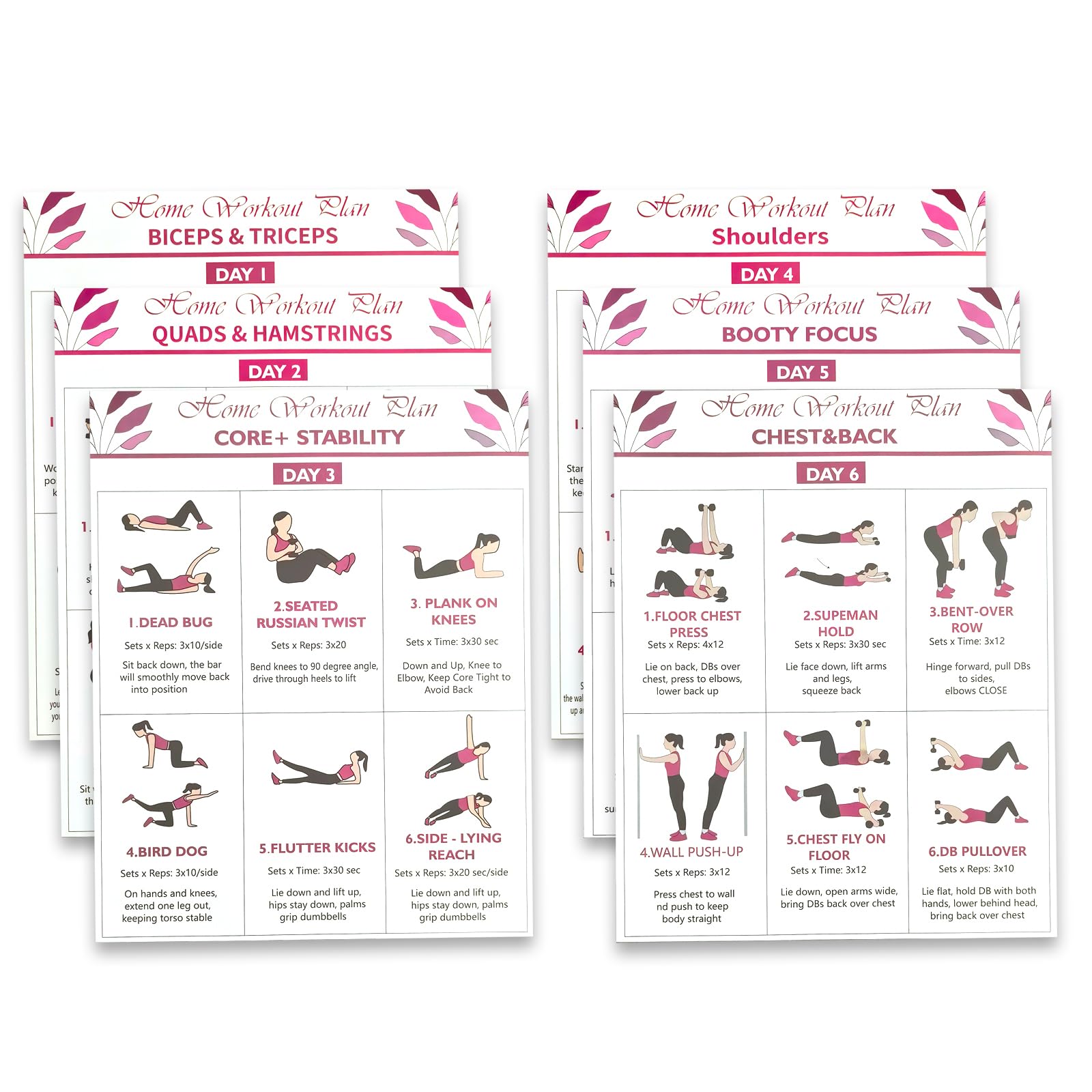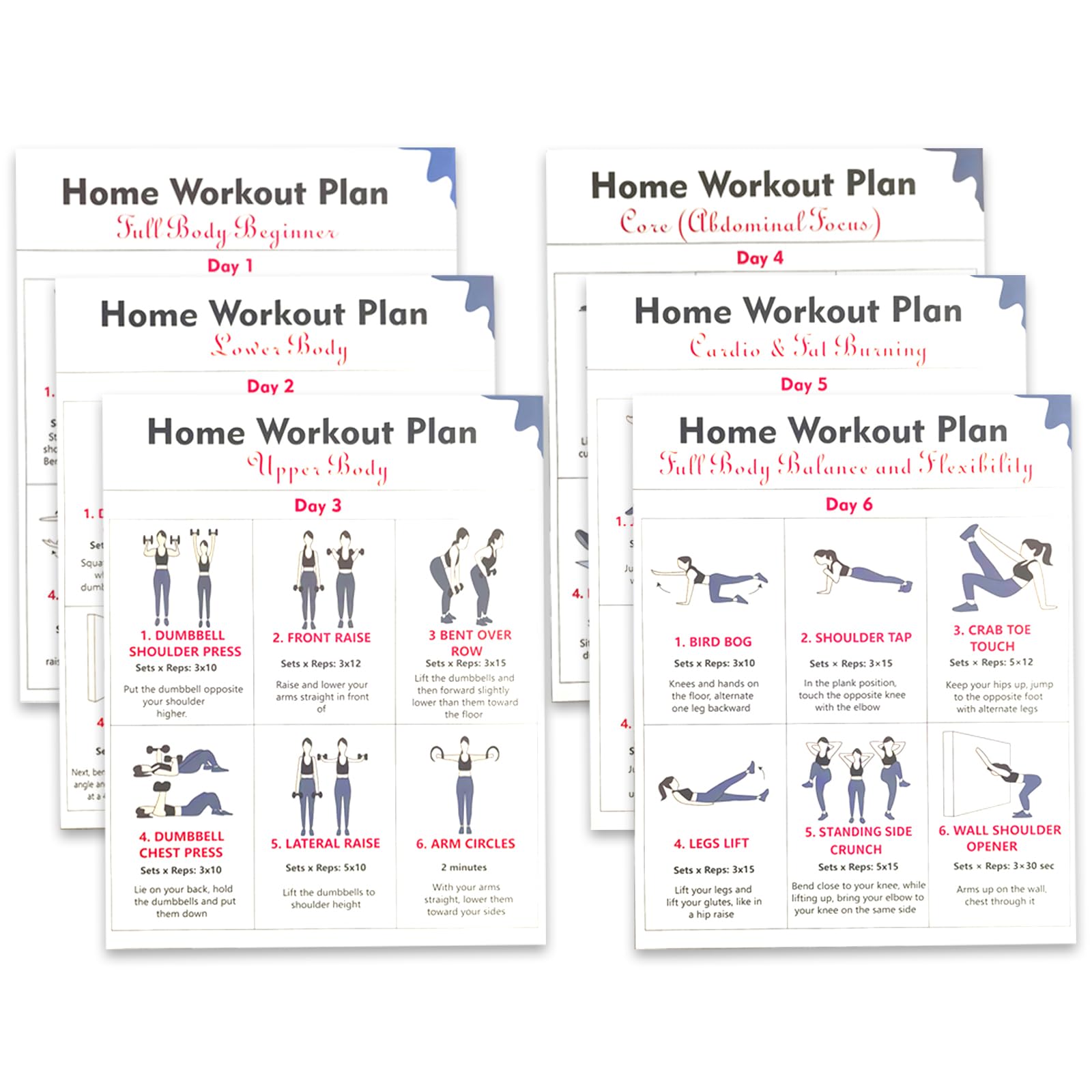 【6-Day Structured Fitness Cycle: Eliminate Guesswork】Your ultimate all-in-one home fitness solution! This set includes 6 uniquely designed posters, each outlining a dedicated workout for a different day. This structured 6-day rotation targets various muscle groups and fitness goals, eliminating the "what should I do today?" confusion and making it effortless to stay consistent and see continuous progress. 【The Perfect Harmony of Dumbbells & Yoga for Total Toning】Experience a truly unique training fusion! Our program masterfully blends the muscle-building power of dumbbell exercises with the flexibility and core-strengthening benefits of yoga. This powerful combination not only torches fat and defines your muscles but also dramatically improves flexibility, posture, and overall mind-body balance for complete, well-rounded results. 【Crystal-Clear Visual Guidance: Perfect for Beginners】 Jumpstart your fitness journey with ease! Each high-quality 20.32x25.4 cm (8"x10") poster features professional, easy-to-follow illustrations, exercise names, and concise instructions. You can confidently perform each move with proper form right from the start, maximizing effectiveness while minimizing the risk of injury. 【Your Cost-Effective, Space-Saving Home Gym】 Ditch expensive gym memberships and bulky equipment. All you need is a set of dumbbells and a wall to create your personal workout space. These durable, laminated posters come pre-punched for easy hanging, offering the ultimate convenient, compact, and affordable way to achieve your fitness goals. 【The Ideal Gift for Every Body & All Levels】 Whether you're a beginner starting a weight loss journey or an experienced enthusiast seeking variety, this program is designed for you. It's the perfect thoughtful gift for friends, family, or yourself to inspire and maintain a healthy, active lifestyle.