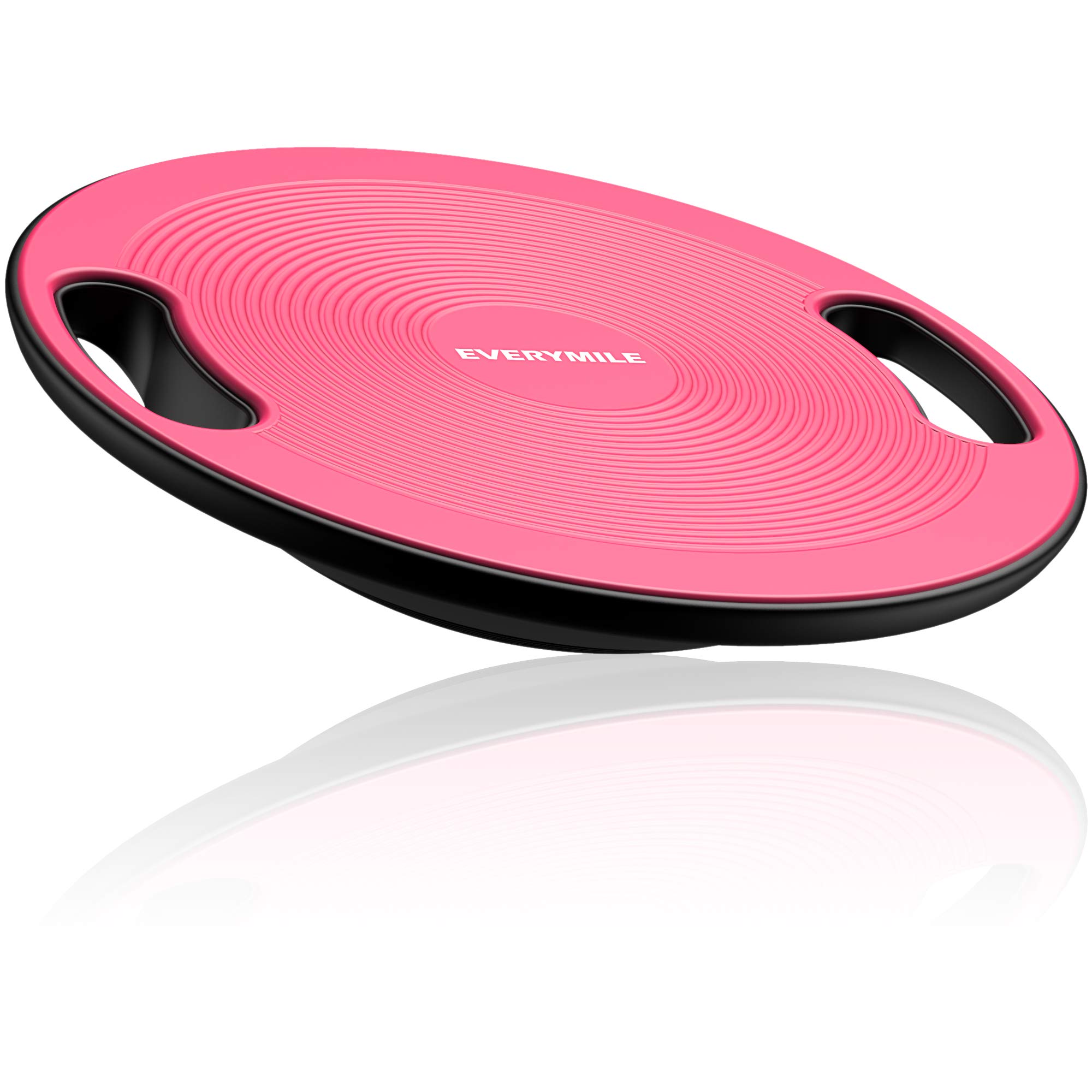 Anti-skid Performance: Abrasion-resistant ABS platform with 6 non-skid feet and non-slip textured surface for maximum stability and added strength, you'll feel stable while exercising even when you're sweaty 360 Degree Rotation &15 Degree Tilting Angle. It is great to perform side to side, front to back, stretch and circular drills. It can also improve balance, coordination, and flexibility while strengthening core areas of your body. It's perfect for balance training and core stability workouts Portable Balance Board: With portable handle design,it is lightweight and very easy to take with you to gym, office or travel or at home Compact & Durable:This balance board is made with durable plastic and TPR material. It weights 3.5lbs, diameter measures 15.7",height measures 3.94" and can hold up to 300 lbs Wide usage: Everymile wobble balance board provides a stable workout rehabilitation and physical therapy for anyone trying to overcome an injury, be it adult athletes or dancers, kids playing sports, or seniors after surgery