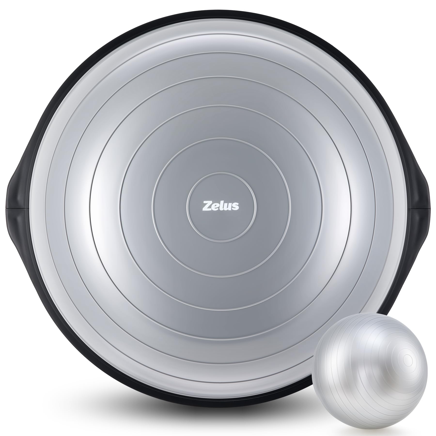IMPROVED WORKOUTS: With this 8" high balance trainer by Zelus, all of your exercises, yoga, muscle and cardio training, and more will provide you a more intense core workout and superior posture improvement as your body adjusts to the slight instability or wobble created RESISTANCE BANDS: Two exercise bands are included free to improve your ability to tone your arms and core; their wide cushioned grips keep things comfortable as you work out NONSLIP DESIGN: To keep you in total control, the surface of the half ball is textured for good traction, while the 25" wide flat base firmly attaches to the floor thanks to its anti-slip TPR matting SAFE & DURABLE: The textured PVC ball and flat ABS base provide superior stability and durability even under punishing use for long-lasting wearproof service; the foot pump inflates the ball quickly and easily while the inflation port's design minimizes wear and tear Prompt Response: Zelus backs this workout equipment with our friendly 24/7 customer service, ensuring that you'll enjoy its use for years to come