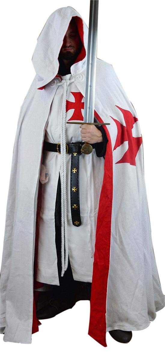NOTE- The Chainmail,Sword & belt is not included.Show only display and Sold Separately Templar Cotton Sleeveless Tunic With Hodded Cap Cloak. Material: These costume cosplay outwear are made of high quality 100% Heavy Cotton Blend Available in a variety of colors. One Size Fits Most,54 Inches (138cm) Long Cloak Hooded Cap Will Fit Regular Sized Persons,Tunic length from Shoulder 48 inches (122cm) Suitable for role play, Halloween photos, costume parties stage costuming witches, witch, royalty, medieval, hobbit,gothic, renaissance wear,and more. Features: Notice all style there come alone without belt. Cross print in front, reenactment Knight Crausedar costume, Amrgard boffet battle game, relaxed fit, unisex adult size costume. Great for renaissance medieval cosplay parties, On the stage, Halloween, Theme Party and comics show etc. Make you very charming and cool.