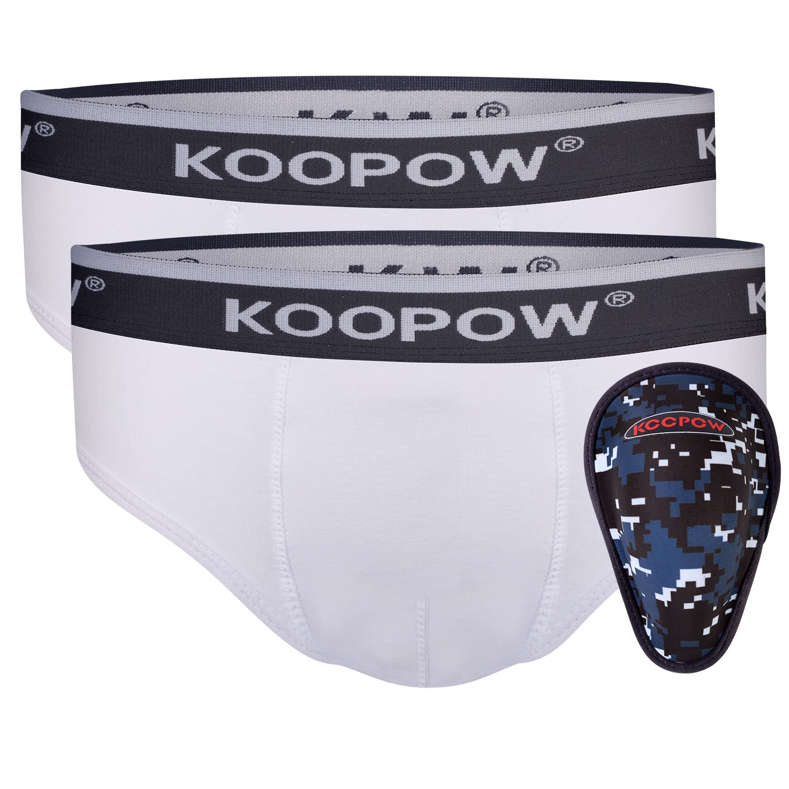 KOOPOW Youth Boys Underwear Shorts With Protective Cup, Kids Sports Baseball Boxer Briefs Athletic For Football Lacrosse