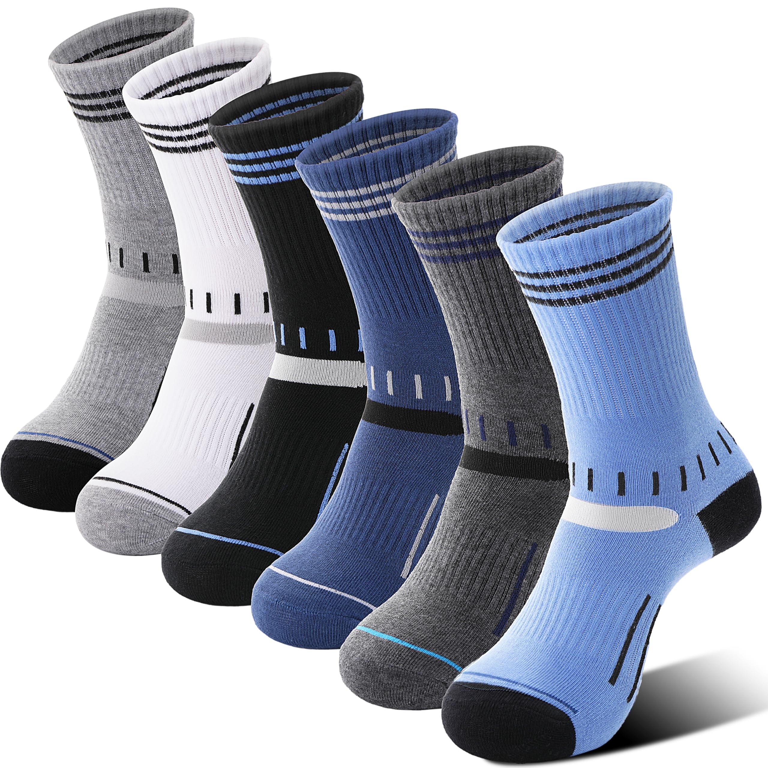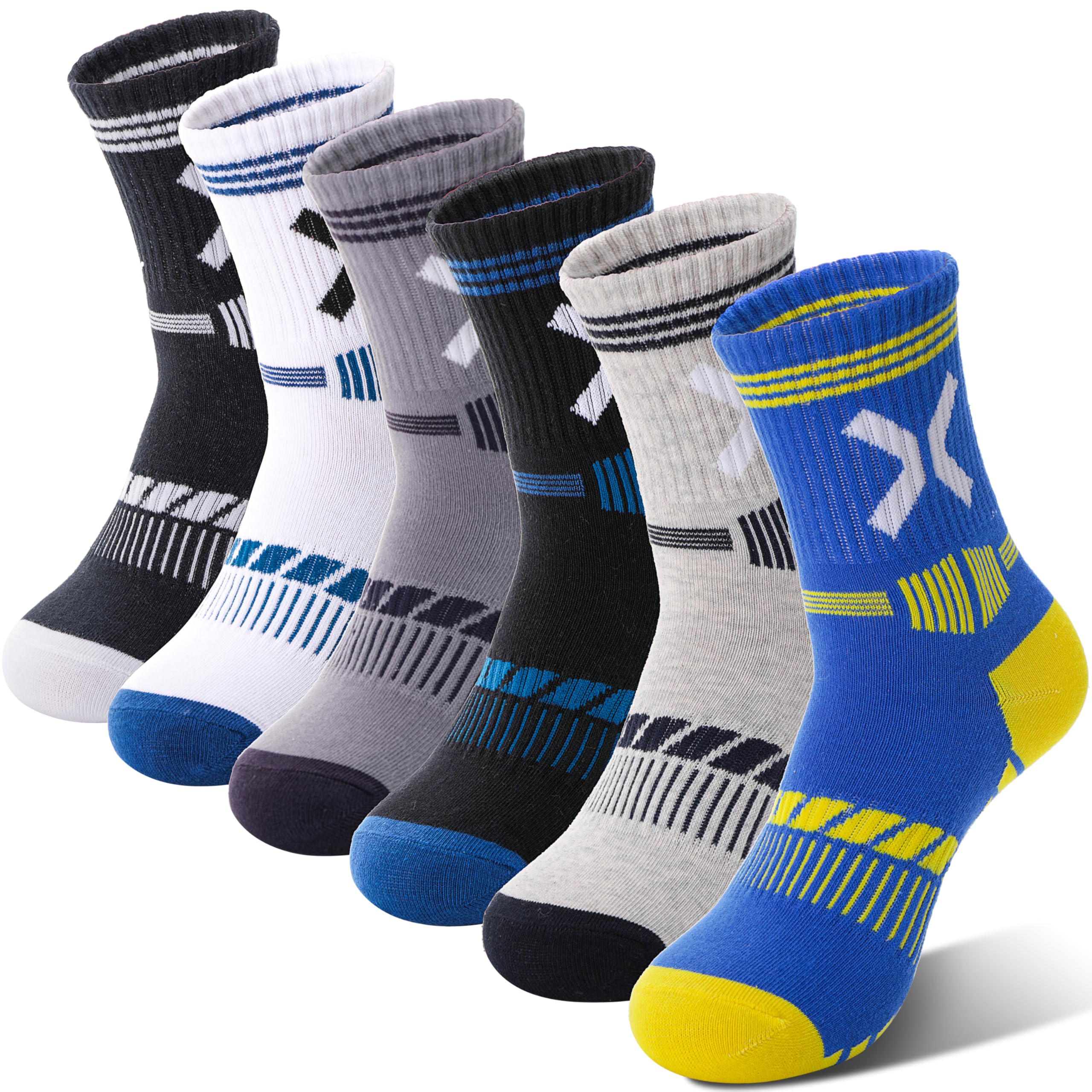 Sandsuced 6 Pairs Kids Boys Socks Athletic Basketball Sport Youth Crew Cotton Soft Breathable Socks for Outdoor