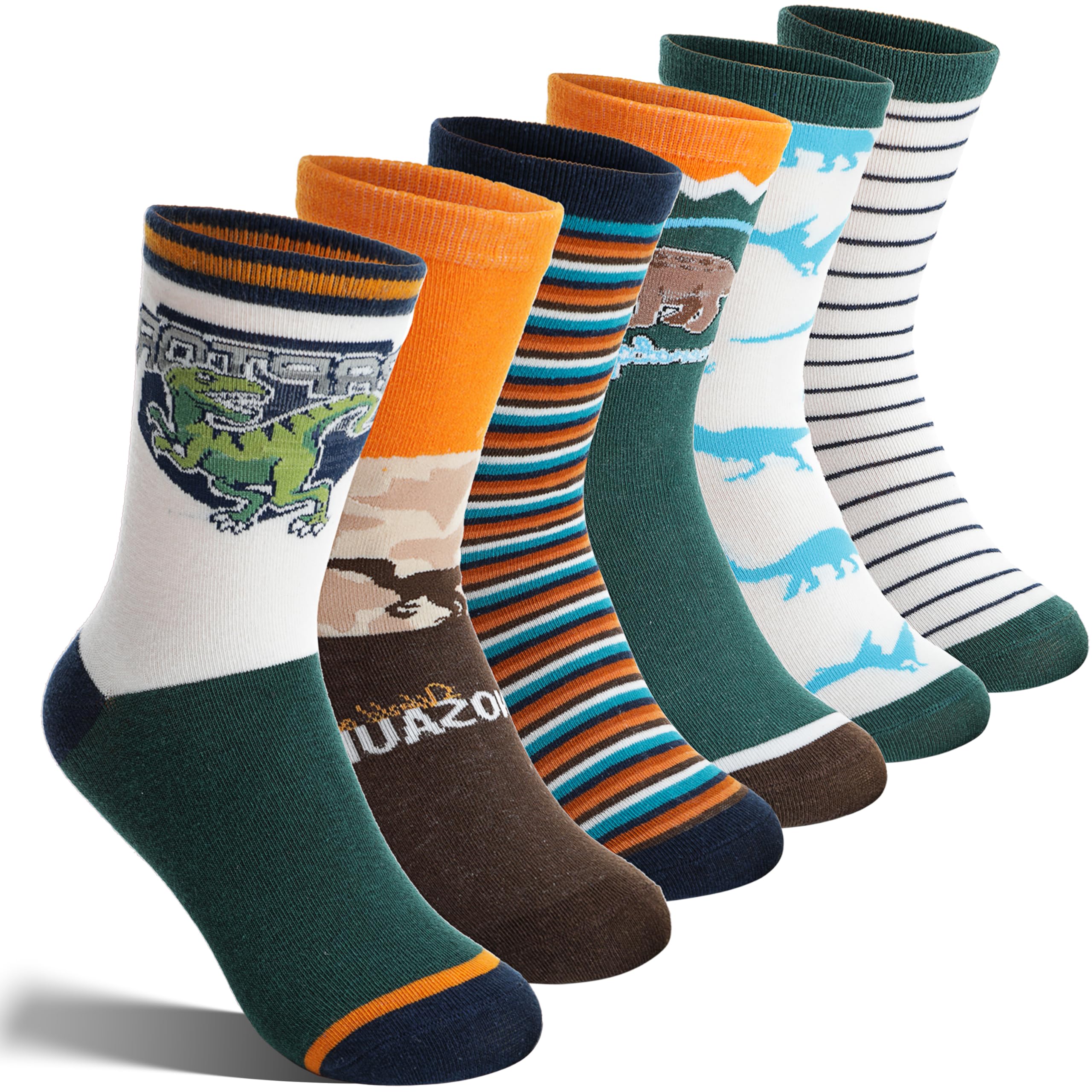 Package: 6 pairs of athletic sports socks tailored for active young boys. The assortment of colors adds a playful touch to any outfit, enticing kids to wear them with enthusiasm Moisture Wicking Cotton: Crafted from a blend of 85% premium cotton and 15% spandex, these athletic socks offer exceptional moisture-wicking properties and enhanced breathability. The natural cotton ensures dry and comfortable feet for your little ones 3 Sizing Options: Select from three size variations: 3-5 Years, 5-8 Years, and 9-15 Years, catering to a range of age groups. Ideal for various activities including sports, school, or outdoor adventures Compression Support: Engineered with a high-stretch cuff and arch support, these socks deliver superior stability and durability. The arch support ensures a secure fit, promoting blood circulation,enhancing comfort and performance during active pursuits like running, or hiking Kid-Friendly Design:Featuring playful designs and patterns, these socks make delightful gifts or stocking stuffers for young boys. Perfect for occasions like birthdays, Christmas, Children’s Day, quirky sock days, Halloween, and more