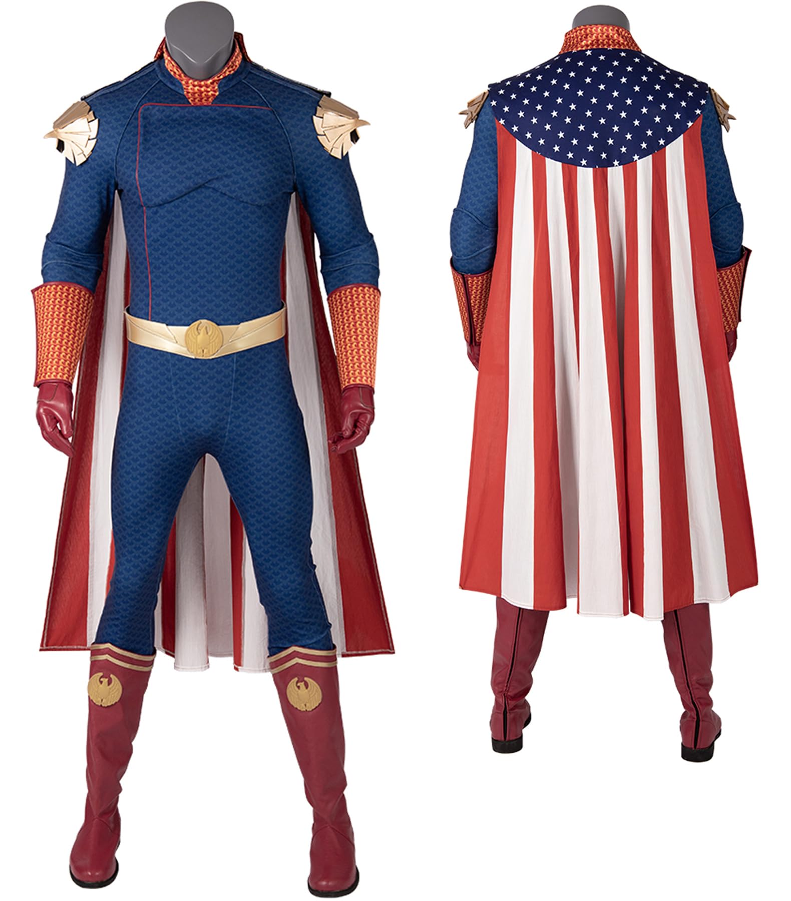 Adult Men Homelander Ice Cosplay Costume Full Set with Cloak for Halloween Carnival Party Uniform.Mens Homelander Cosplay Costume Homelander Ice Outfit with Jumpsuit Cape for Halloween. Material: Homelander Costume is made of Roman fabric + fish scale leather + spandex leather + elastic leather + sponge + Uniform cloth. Including: Jumpsuit + Homelander Cape + Belt + Gloves + Wrist guard. Occasion: homelander suit is Perfect for cosplay, Halloween party, on the stage , Christmas, daily wear, theme party, birthday ect. Size: Standard US Men Size. Please refer to Amazon Size Chart.