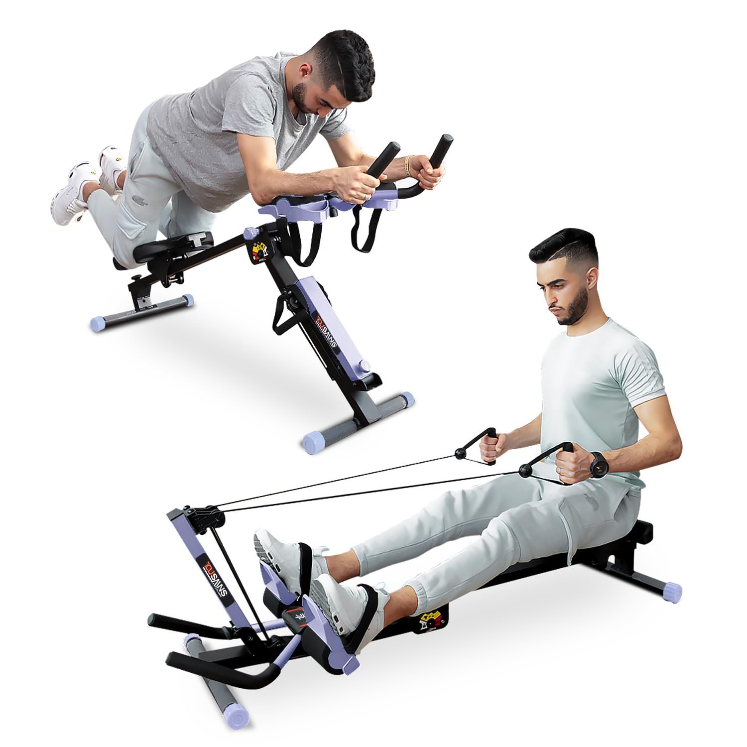 🚣𝙏𝙤𝙩𝙖𝙡 𝘽𝙤𝙙𝙮 𝙁𝙖𝙩 𝘽𝙪𝙧𝙣𝙞𝙣𝙜 𝙖𝙣𝙙 𝙏𝙤𝙣𝙞𝙣𝙜: Tousains 3 in 1 rowing machine offers a variety of exercise modes, including rowing, abdominal exercises, fitness and reverse rowing, and standing stretching. With these rowing machine activities, you can effectively burn fat, build a healthier physique and help you achieve your fitness goals even if you exercise at home. 🚣𝘼 𝙧𝙤𝙬𝙞𝙣𝙜 𝙢𝙖𝙘𝙝𝙞𝙣𝙚 𝙛𝙤𝙧 𝙩𝙝𝙚 𝙬𝙝𝙤𝙡𝙚 𝙛𝙖𝙢𝙞𝙡𝙮: AB Machine with 3 Level Angle and 4 level of height adjustment, this rowing machine is suitable for all fitness levels, stretching your abs, arms, chest, shoulders, back muscles and strengthening your core muscles. And comes in three different colors, useful for any man or woman, to help you burn calories and stay in shape. 🚣𝙎𝙩𝙖𝙗𝙡𝙚 𝙎𝙩𝙧𝙪𝙘𝙩𝙪𝙧𝙚 𝙛𝙤𝙧 𝙃𝙚𝙖𝙫𝙮 𝙐𝙨𝙚𝙧𝙨: This rowing machine is designed to support users weighing up to 265 pounds and with heights ranging from 5 feet to 6 feet 6 inches. It features a robust and reliable frame that ensures stability even during intense workouts. 🚣𝙍𝙚𝙖𝙡-𝙩𝙞𝙢𝙚 𝙒𝙤𝙧𝙠𝙤𝙪𝙩 𝘿𝙖𝙩𝙖: The home rowing machine is equipped with a LCD display, allowing you to monitor your exercise metrics in real time and accurately record your achievements, such as strokes, distance, time, calories burned, count and total count. Reflect on your performance and motivate yourself to achieve all your fitness goals more easily. ✅𝙎𝙥𝙖𝙘𝙚 𝙨𝙖𝙫𝙞𝙣𝙜&𝙛𝙤𝙡𝙙𝙖𝙗𝙡𝙚: This rower has a built-in bottom wheel to easily move the rower without assistance. Folding size :17 * 11 * 50 inches. The rowing machine collapsible rail design and vertical storage options save space and enhance portability.