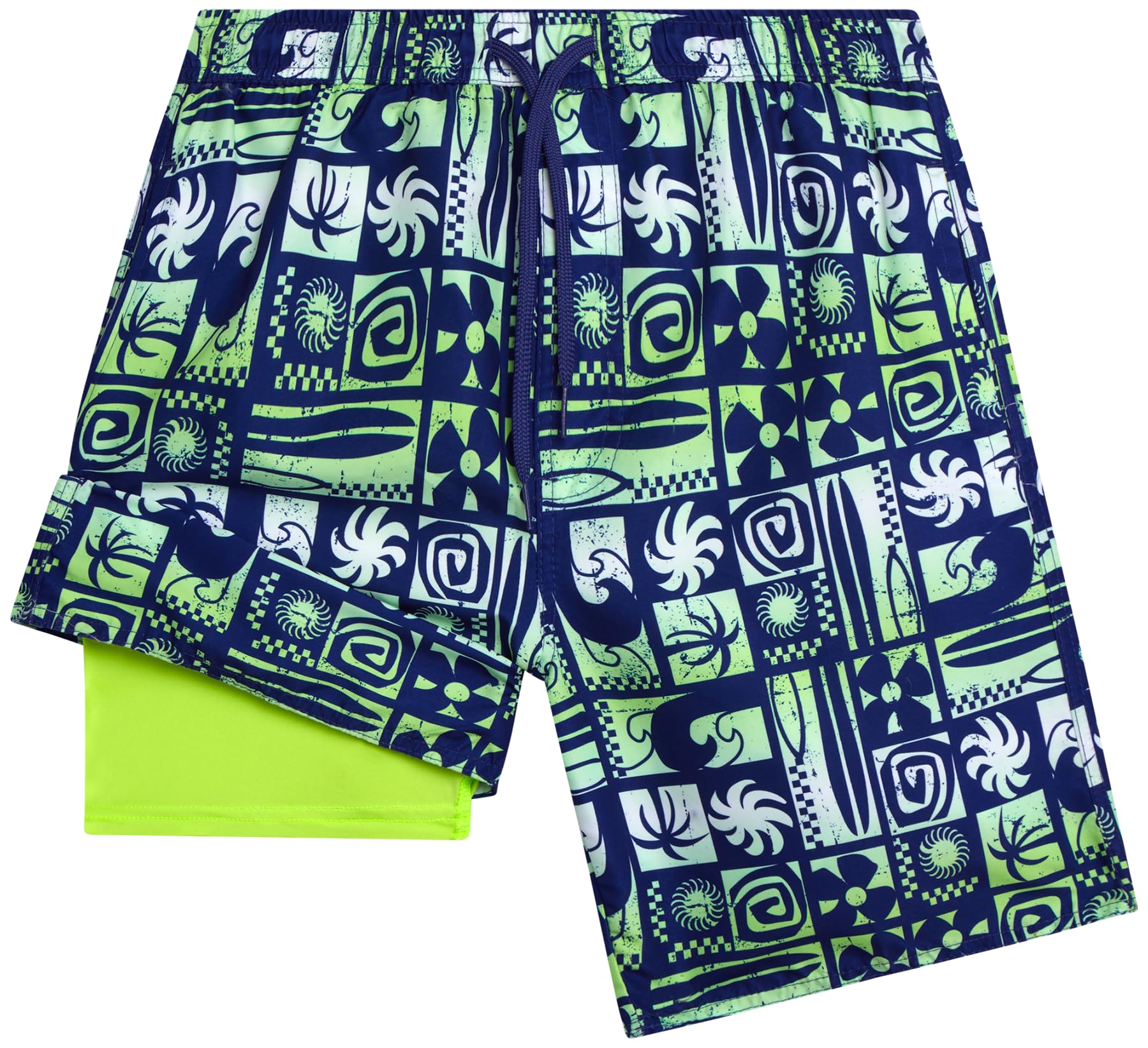 Built-In Compression Liner for Maximum Comfort: Our swim trunks feature a soft, stretchy boxer brief liner that provides superior support and reduces chafing, ensuring all-day comfort during active play. Quick-Dry, Lightweight Fabric: These swim trunks dry fast to keep boys comfortable after swimming. The soft, breathable material is ideal for active play, beach trips, or long days by the pool. Secure and Functional Pockets: Equipped with two side pockets these swim trunks provide ample space to safely store small essentials during beach or pool activities. Adjustable Fit with Elastic Waistband and Drawstring: The elastic waistband paired with a functional drawstring ensures a snug and customizable fit, accommodating growing boys and active movements. Stylish Designs for Ages 8-18: Available in a variety of vibrant patterns and colors, these swim trunks are designed to appeal to boys aged 8 to 18, making them a fashionable choice for summer fun.