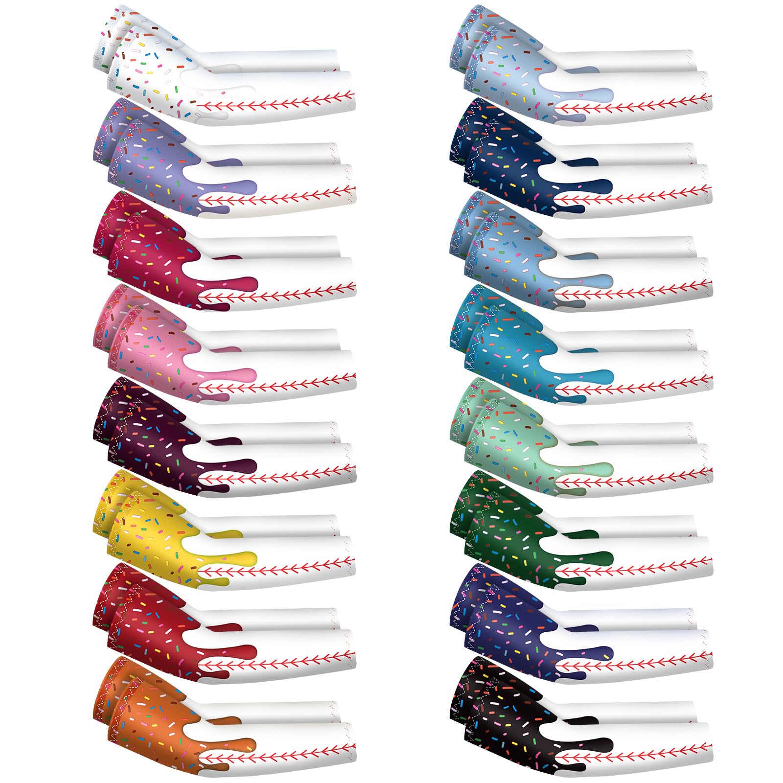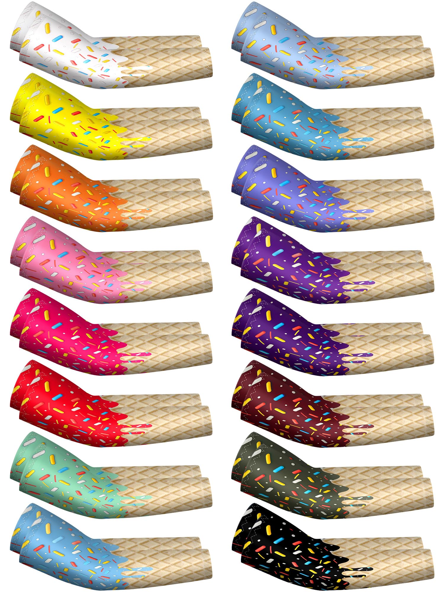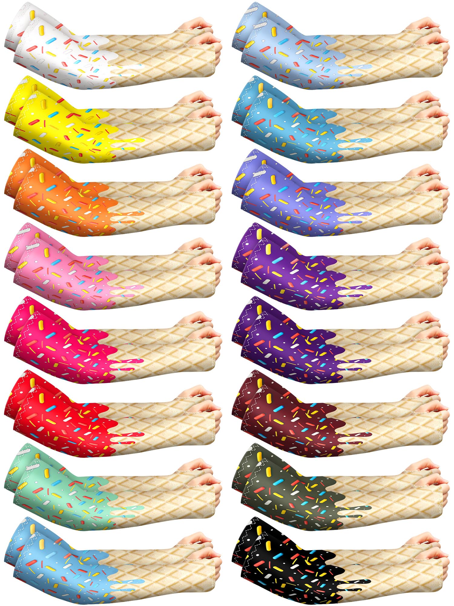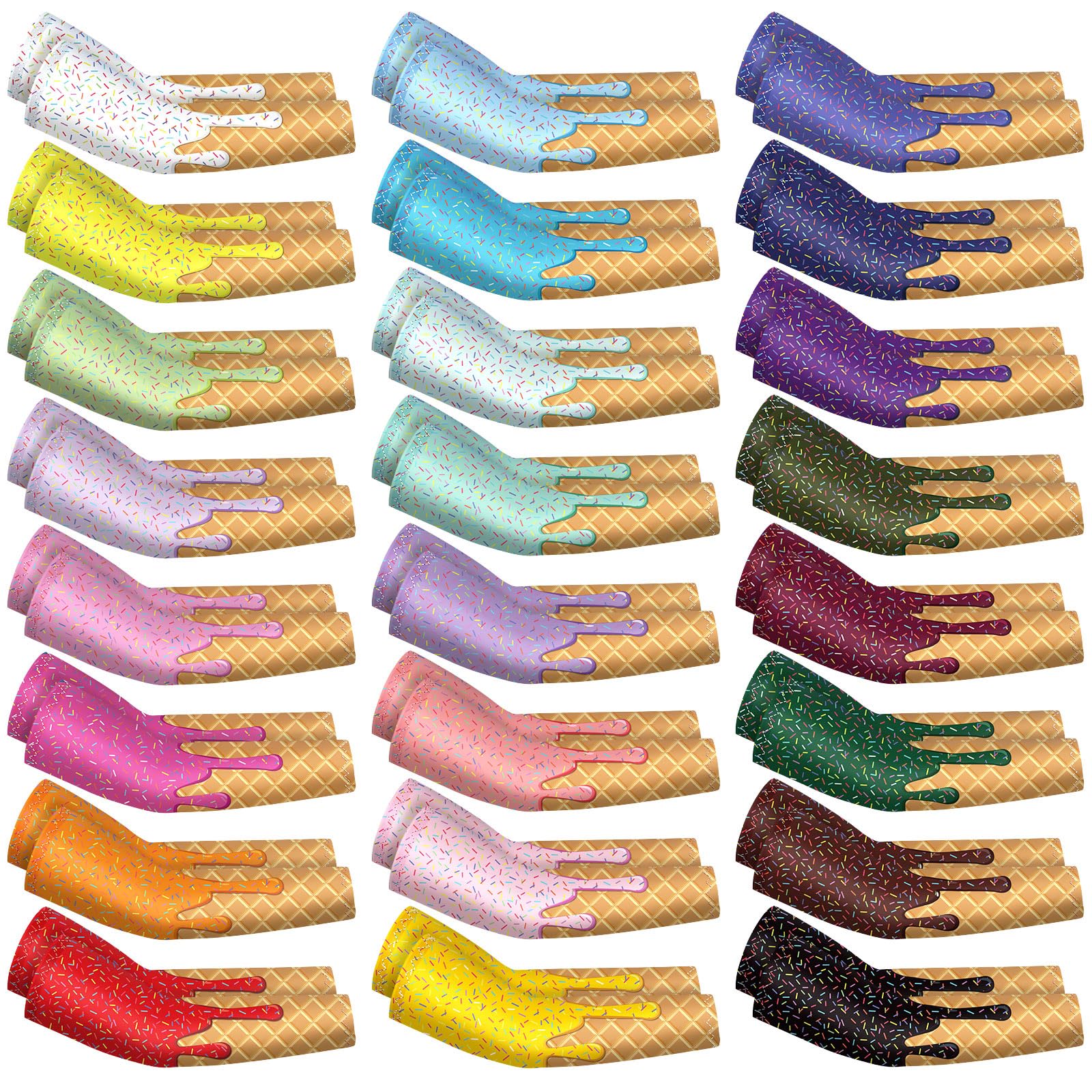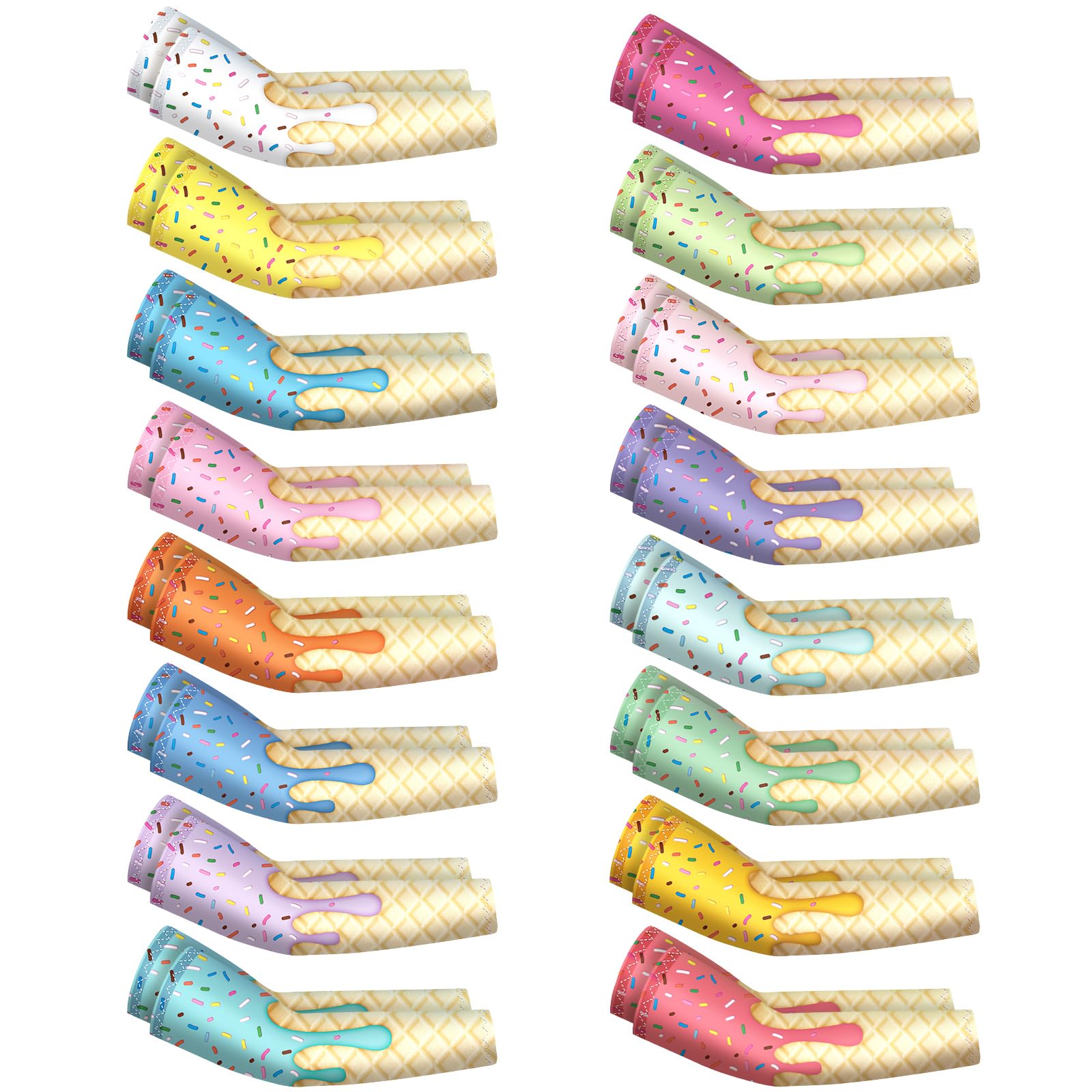 JaGely 16 Pairs Ice Cream Arm Sleeves for Kids UV Sun Protection Football Basketball Baseball Compression Long Sleeves Youth