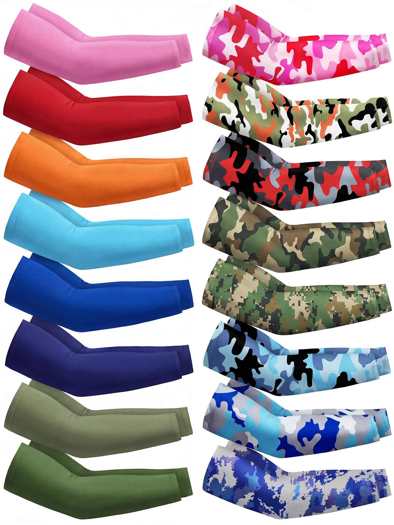 Package for Multiple Sporting Needs: our package includes 16 pairs of kids arm sleeves, designed for sporting; Whether it's a football sleeve, basketball arm sleeve, or an arm sleeve for kids, we've got you covered Comfortable Material: our arm warmers are made of 76D milk silk, ensuring comfort; Its soft texture offers a seamless experience, making the kids arm sleeves a companion for their baseball game Stretchable Design: whether you're indulging in arm warmers cycling or baseball, our kids arm sleeves offer a fit, thanks to their elasticity; Their comfortable fit allows for unhampered movement UV Protection: outdoor sports expose your child to harsh UV rays; Our UV protection arm sleeves offer excellent protection, mitigating detrimental effects; These can be your kid's armor during those football sessions under the sun Multipurpose Utility: our football sleeves double up as basketball arm sleeves, arm warmers for cycling, and kids baseball arm sleeves; Each sleeve caters to different sports requirements, enhancing versatility and usage