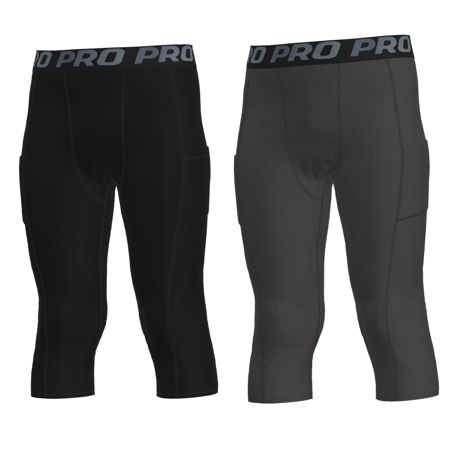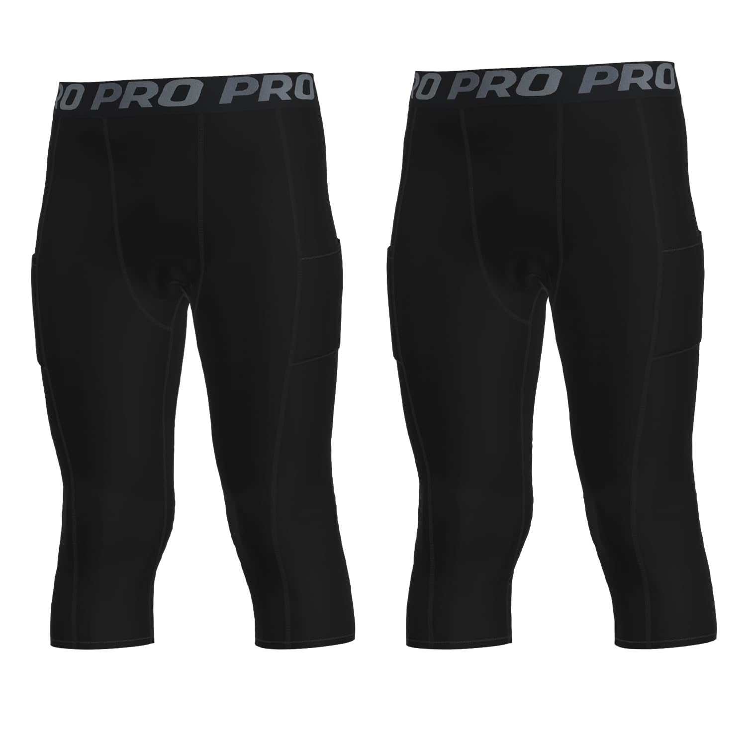 YUSHOW 2 Pack Boys Compression Pants 3/4 Length with Pocket, Youth Basketball Tights Kids Quick Dry Athletic Leggings Sports