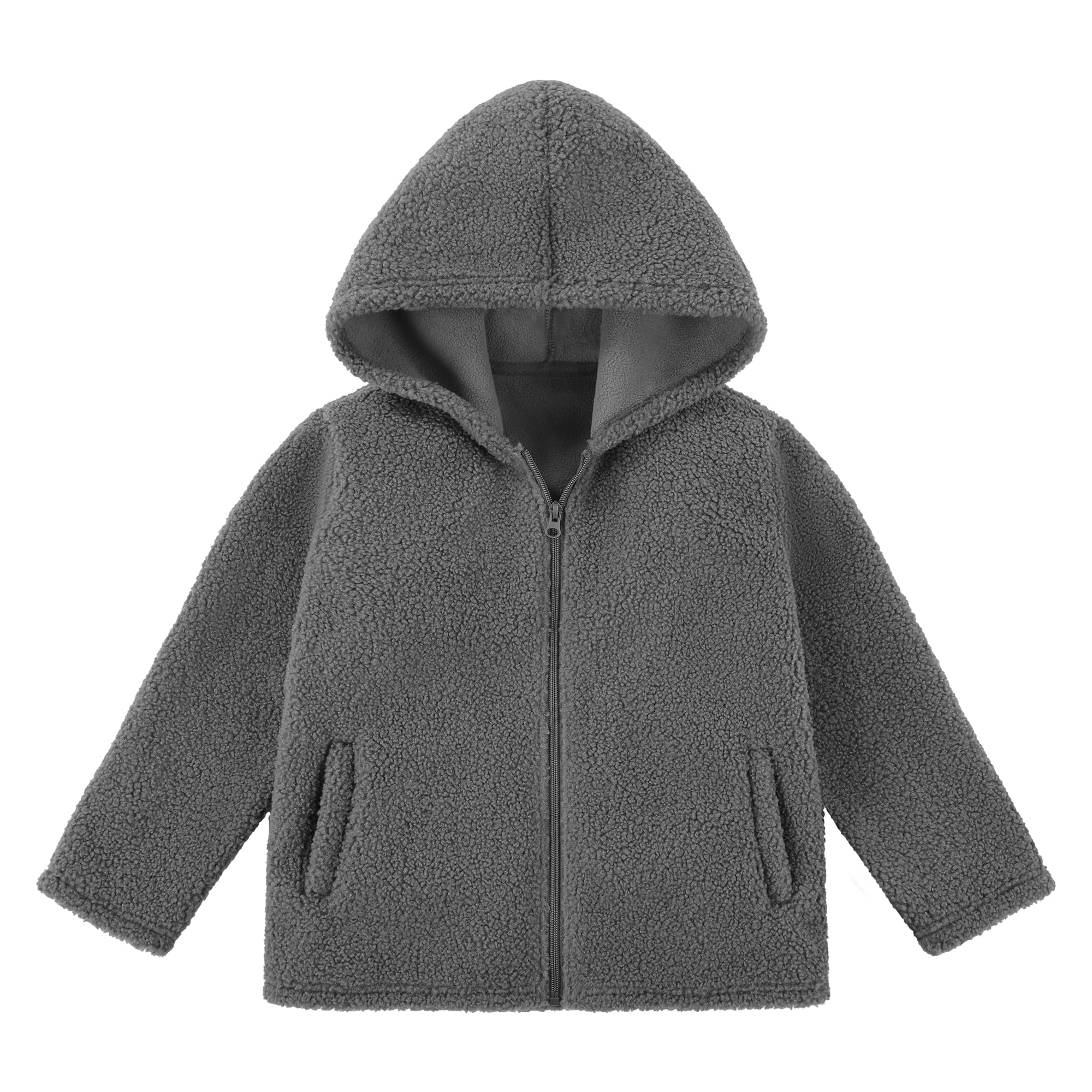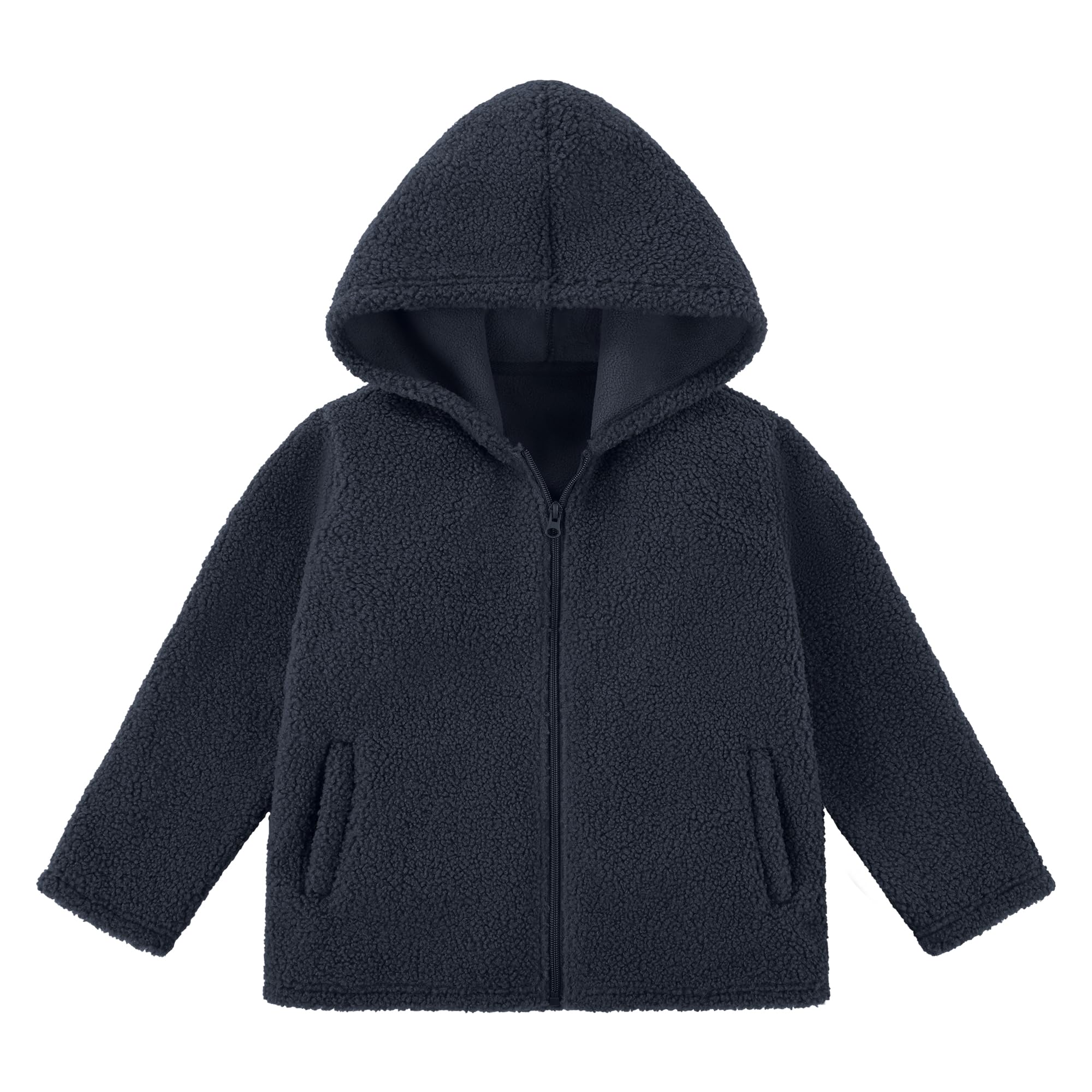 Super Soft & Cozy Fleece: Toddler fleece jacket is made from a Sherpa fleece outer layer with a brushed polar fleece inner for extra warmth, keeping your little kids snug and comfortable in chilly weather; No more scratchy or stiff jackets Full-Zip Hooded Design: This boys' warm fall and winter outwear features a convenient zip-up front and an adjustable hood for added protection against wind and cold; the polar fleece full-zip hooded jacket for boys' and toddlers' is ideal for school, outdoor play, or family outings Functional & Stylish: The toddler fleece jacket includes 12 front pockets to keep small hands warm or store essentials; you can easily pair them well with long sleeves, sweaters, jeans, or joggers for versatile everyday wear Applicable Occasions: Designed to trap heat without bulk, the boys' warm fall and winter outwear makes it easy for active kids to move freely while staying cozy whether they're attending family parties, outdoor playing, school, or fall and winter walks Multiple Sizes & Colors: The boys' and toddlers' polar fleece full-zip hooded jacket is available in sizes from 3T to 10 years with a variety of colors to match your child’s style; it's durable stitching also offers long-lasting wear