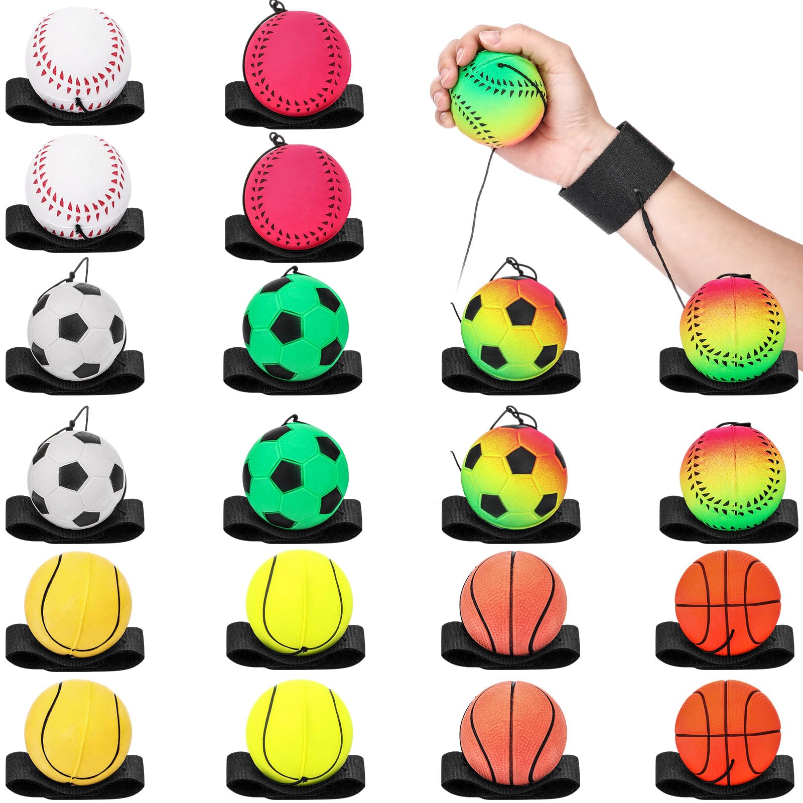 Skylety Wrist Return Ball Wrist Band Ball on a String 2.48 Inch Rubber Rebound Sport Bouncy Basketball Baseball Soccer Wristband Toy for Exercise and Children or Adult Exercise for Fun