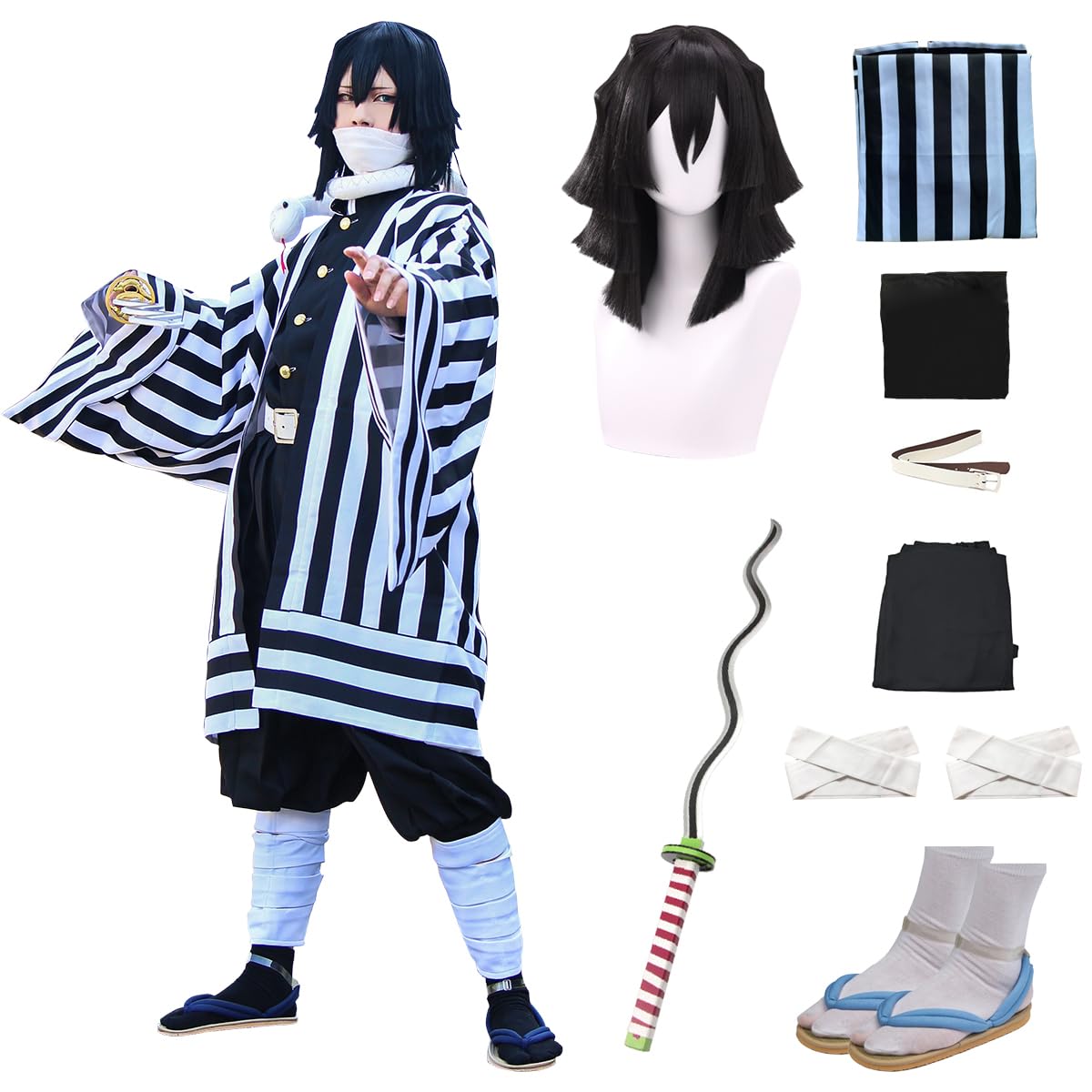 Includes: 1*Cloak Coat, 1*Jacket, 1*Belt, 1*Trousers, 1*Legging Strap, 1 pair *shoes, 1*COS Sword, 1*Wig Suitable places: Perfect Halloween, dress-up party, Christmas, stage performances, anime expo, club vacations,etc. Material:Costume is made of top grade polyester fabric, soft, breathable and comfortable for the whole day long wearing, hand washable and machine washable, easy to clean. Size: S--suit for height 155-160cm; M--suit for height 160-165cm; L--suit for height 165-170cm; XL--suit for height 170-175cm; 2XL suit for height 170-180cm. Perfect gift for anime fans who want to cosplay Japanese anime role kimono outfit novelty prop.