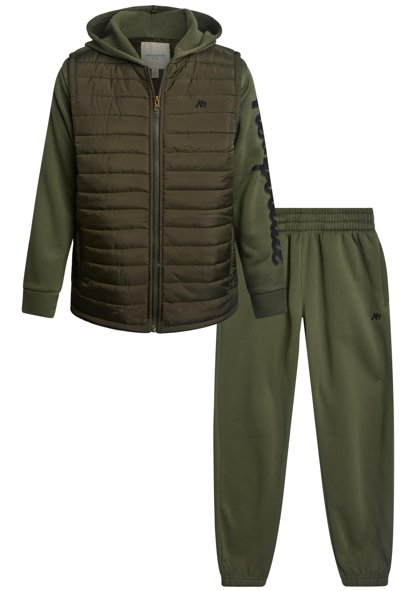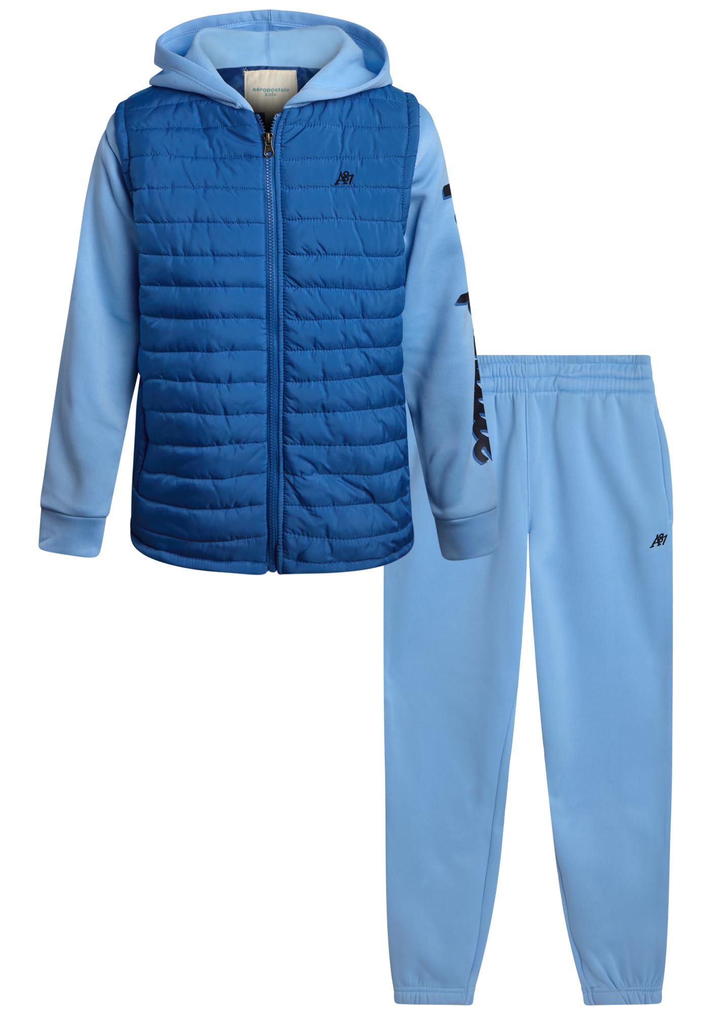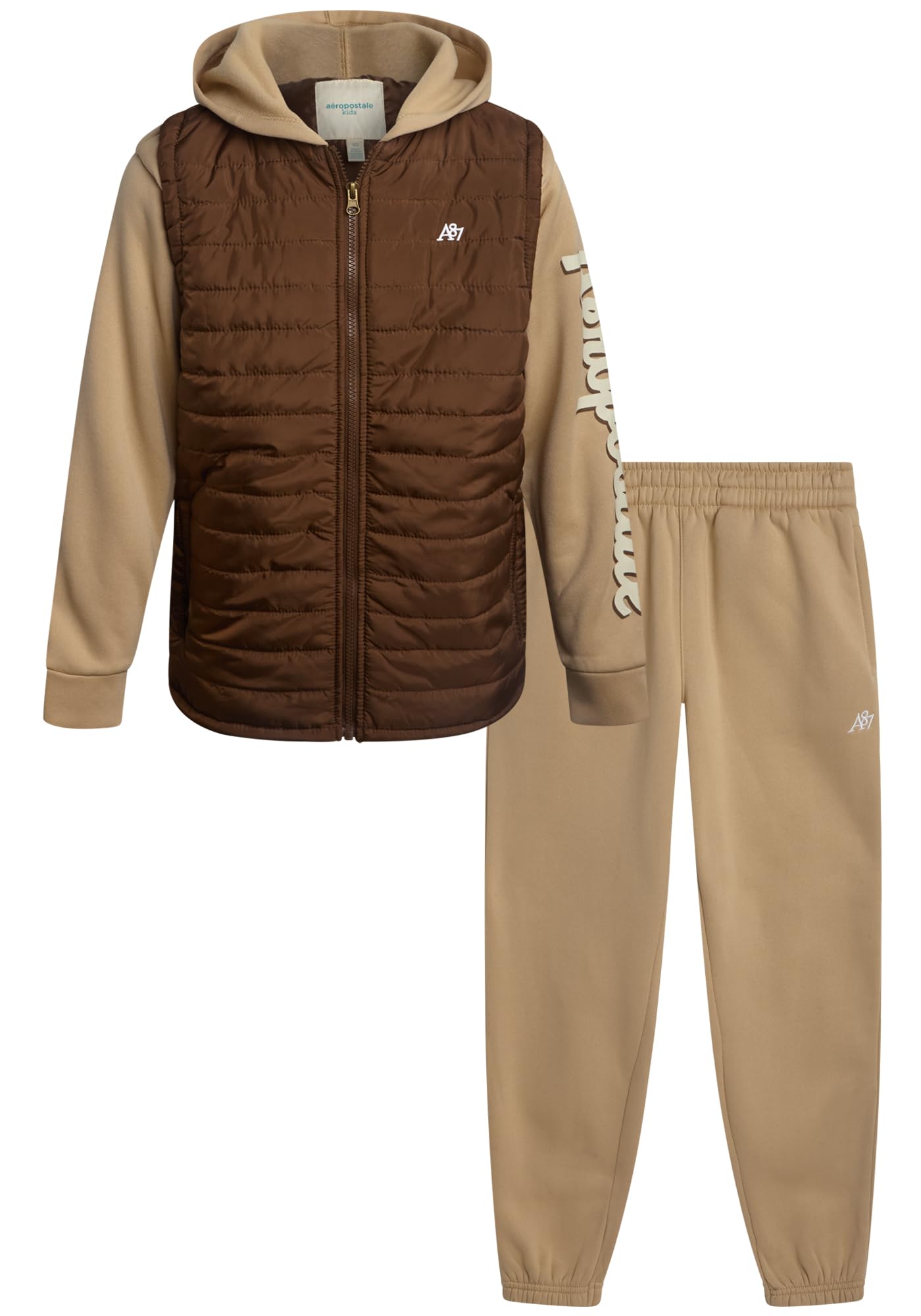 Sweat Set Layered Look, Zero Bulk: AEROPOSTALE brings a playful twist to boys' clothing sets with a bold two-piece that pairs a fleece base with a smooth twofer puffer finish, giving kids the layered look they love while working seamlessly with cargo boys sweatpants, sweat pants for boys, puffer jacket kids, boys jogger pants, and other everyday favorites for a true matching set built for motion. Sweatpants Set Everyday Action: This set blends a sleek boys puffer jacket silhouette with soft cargo kids sweatpants, creating a dynamic mix that feels ready for anything, from school days to weekend adventures. Thoughtful shaping supports boys jackets size 8-10, boys jackets size 10-12 and works effortlessly with sweatpants for boys who never stop moving. Matching Sweat Set Comfort That Keeps Up: Kids get lasting comfort with flexible movement thanks to easy-wear jogger styling that supports boys jogger sweatpants, youth sweatpants boys, boys joggers size 8, and boys size 8 sweatpants, while the smooth outer layer channels classic coat for boys, winter jackets for boys, twofer puffer jacket boys, and kids puffer jacket vibes that keep them confident on the go. Jogger Set All-day Adventures: Made for action, this sweatsuit set handles playground energy, chilly mornings, and nonstop exploring, pairing strong construction with the adaptability families expect from cargo boys sweat pants, kids sweat pants, boy sweatpants, and sweatpant set styles, while the top brings the polished punch of boys coats size 10-12 into everyday wear. Hoodie Set Goes Anywhere: A go-everywhere combo that keeps up with active days, blending the cozy feel of boys athletic sweatpants and boys sweatpants size 8 with the attitude of a boys puffer jacket, giving kids a versatile option that works with school outfits, weekend gear, or mix-and-match looks across all kids pants, sweatpants boys, and boys sweatpants wardrobes.