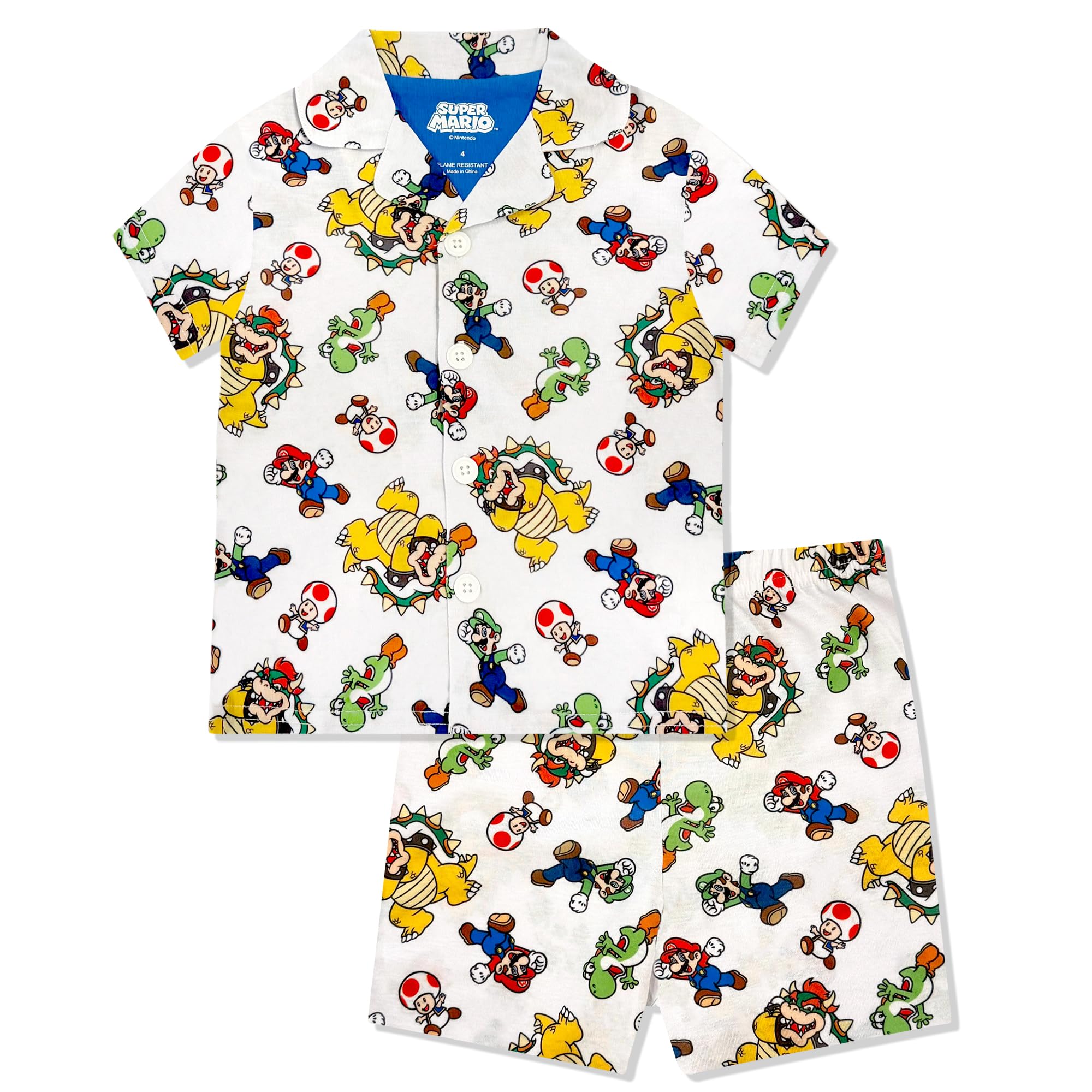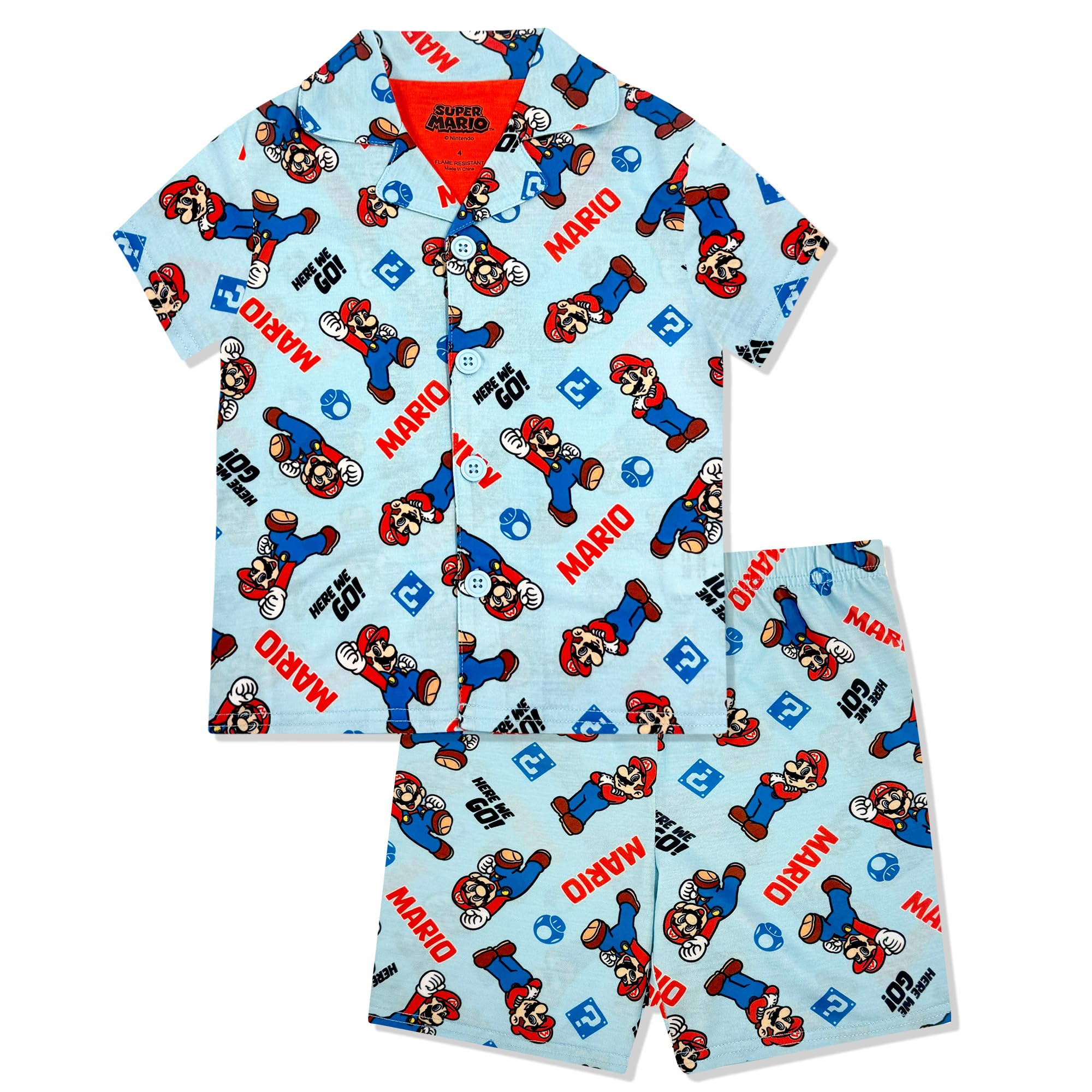 Super Mario Boy's Pajama Set - 2 Piece Boys Flannel Coat Style Short Matching PJs, Kids Button Down Pajamas - Official