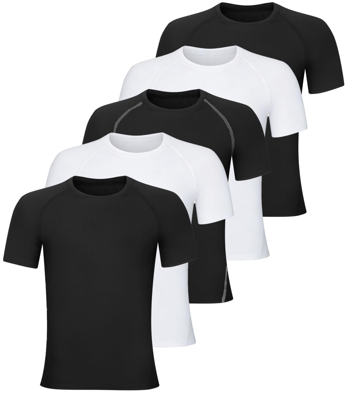 5 Pack Boys Compression Shirt Short Sleeve Youth Quick Dry Basketball Football Athletic Base Layer T-Shirt