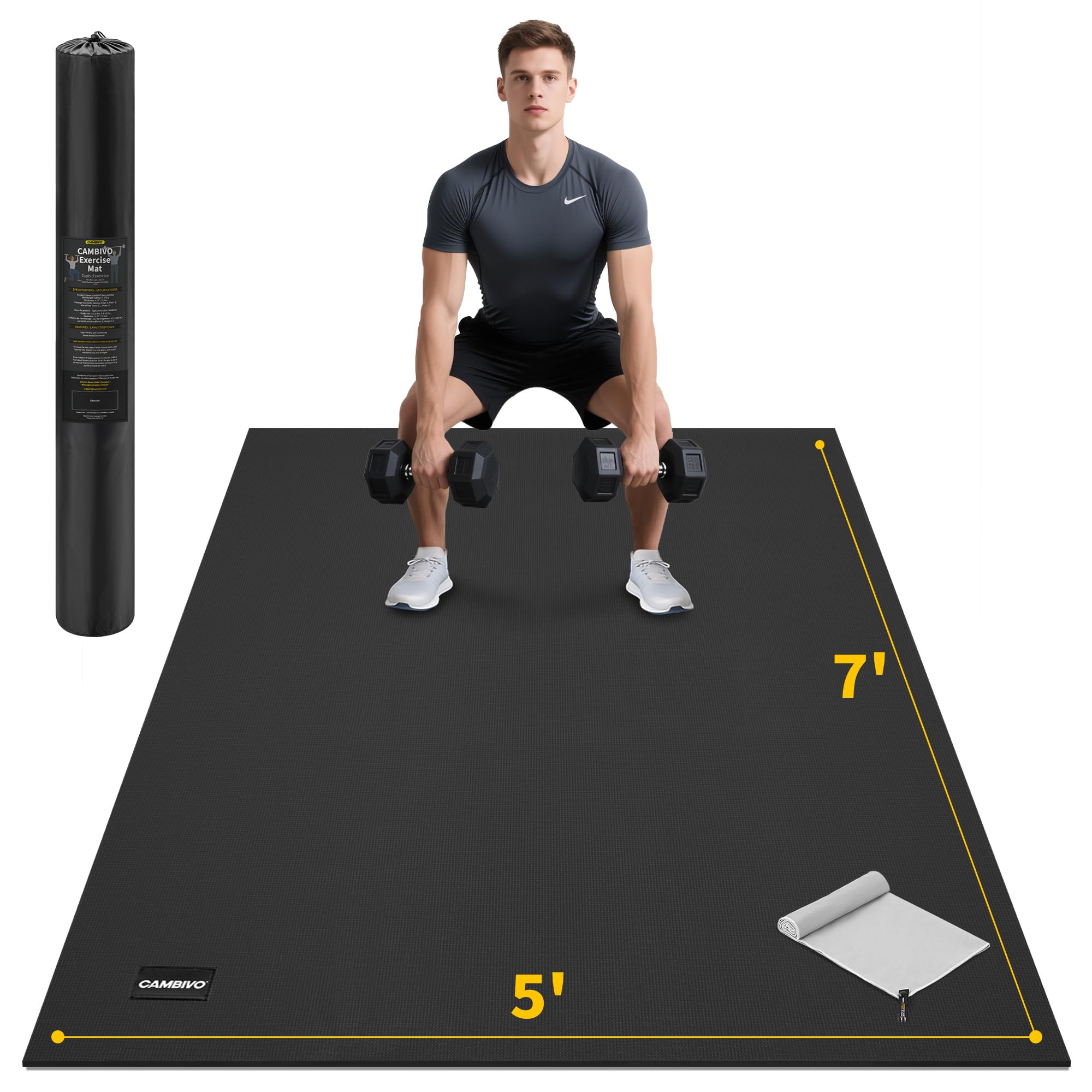 CAMBIVO Large Exercise Mat for Home Workout, 8'x6'/7'x5'/6'x4' (7 mm) Extra Thick Exercise Mat for Home Gym, Shoe-Friendly, Non-Slip Gym Mat for Jump Rope, Weights, Cardio, Fitness