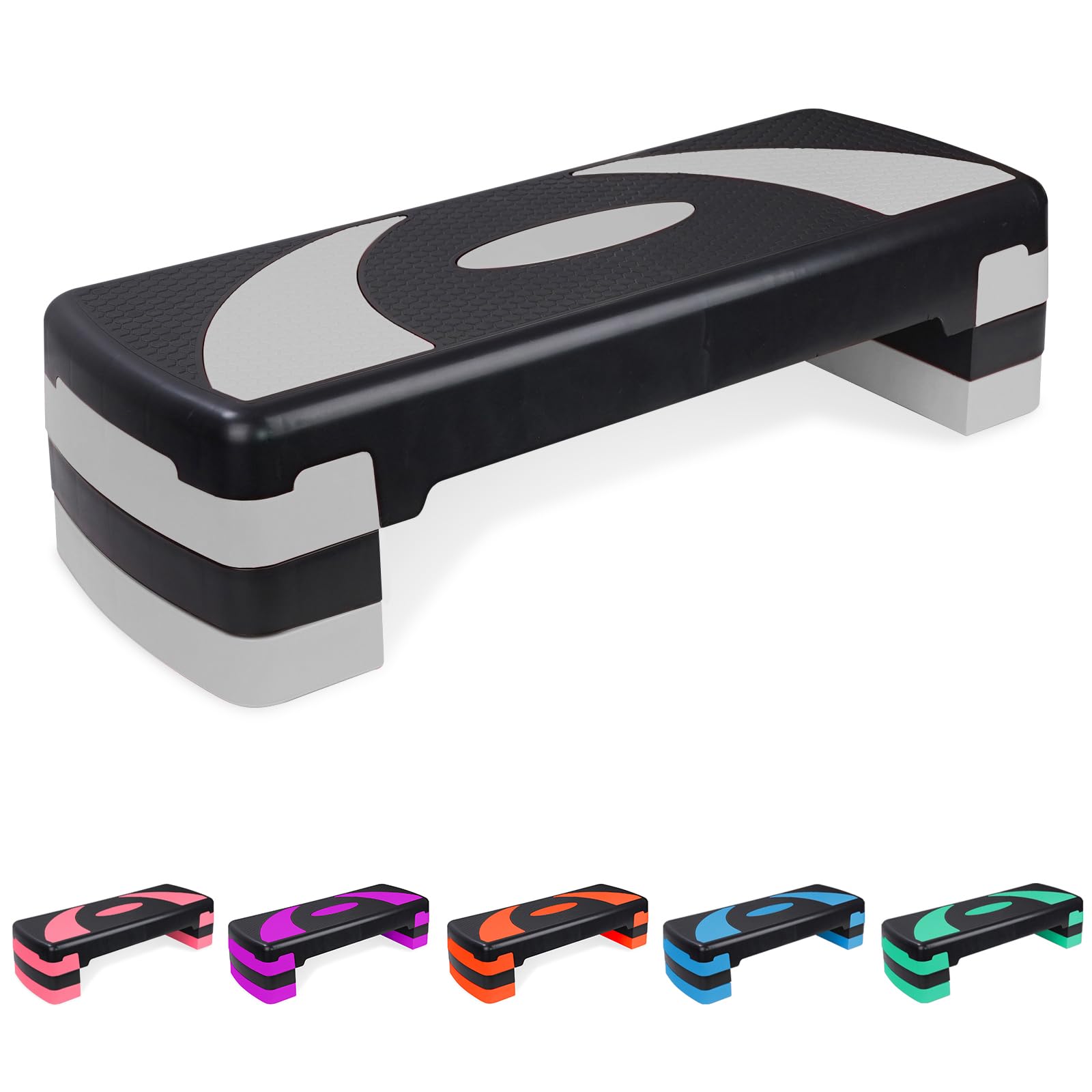 【DURABLE & TOP QUALITY MATERIAL】This step up exercise platform is constructed with durable high-density ABS material, features of shock-absorbent and assure your safety of exercises. The fitness stepper platform is built for long-term use and strong enough to support up to 550 lbs. 【ANTI-SLIP & NO SCRATCHES】Textured surface is non-slip and shock absorbing, meaning you can have stability with every single set of steps. This workout stepper comes with nonskid rubber feet on each riser, prevent you from sliding/slipping, provide stable performance and leave no scratches. 【LIGHTWEIGHT & COMPACT】This step platform is lightweight and you can carry it anywhere like gym, office or outdoors. The stackable risers can be easily stored underneath the platform that you can store it under your bed, sofa or corner. Just step to a healthy life from now! 【3 ADJUSTABLE HEIGHT】Comes with 31"(L) x 11"(W) x 4"(H) platform and 4 risers. Intensify workout difficulty by adjusting platform height from 4" to 6" to 8" using risers to challenge yourself. Perfect for people of all ages and fitness levels. 【VERSATILE & MULTIPLE BENEFITS】Perfect for aerobic workouts, cardio and HIIT. You can perform planks, burpee jumps, crossovers, knee up, push-ups, sit-ups and more to boost your muscle, burn calories, lose weight and improve cardiovascular. This step deck is great for workout classes, recovering from an injury, or everyday regular workout routines at home.