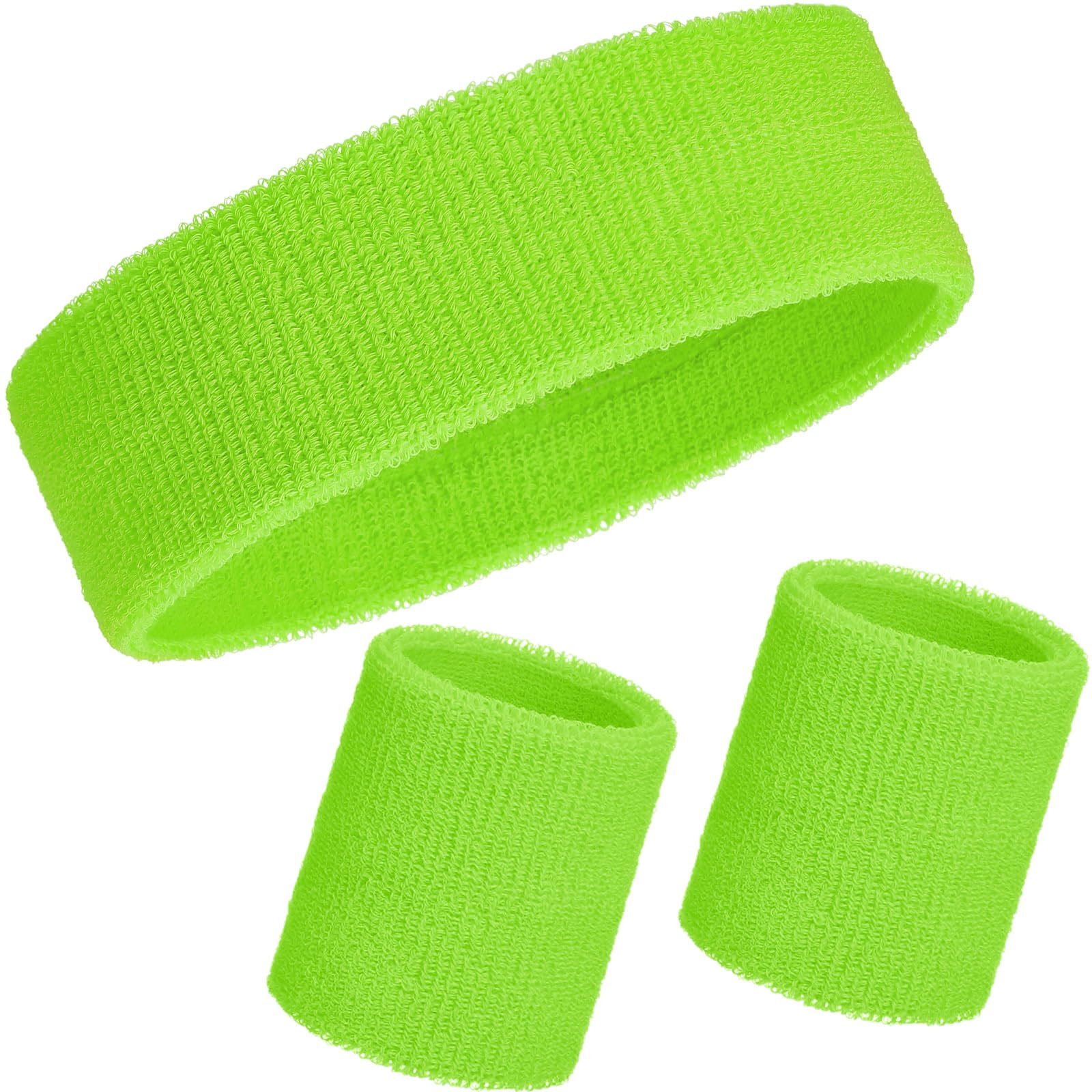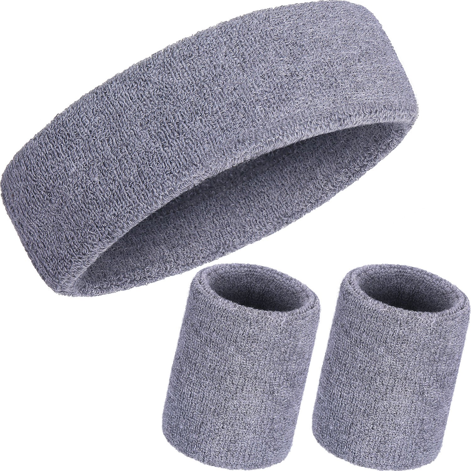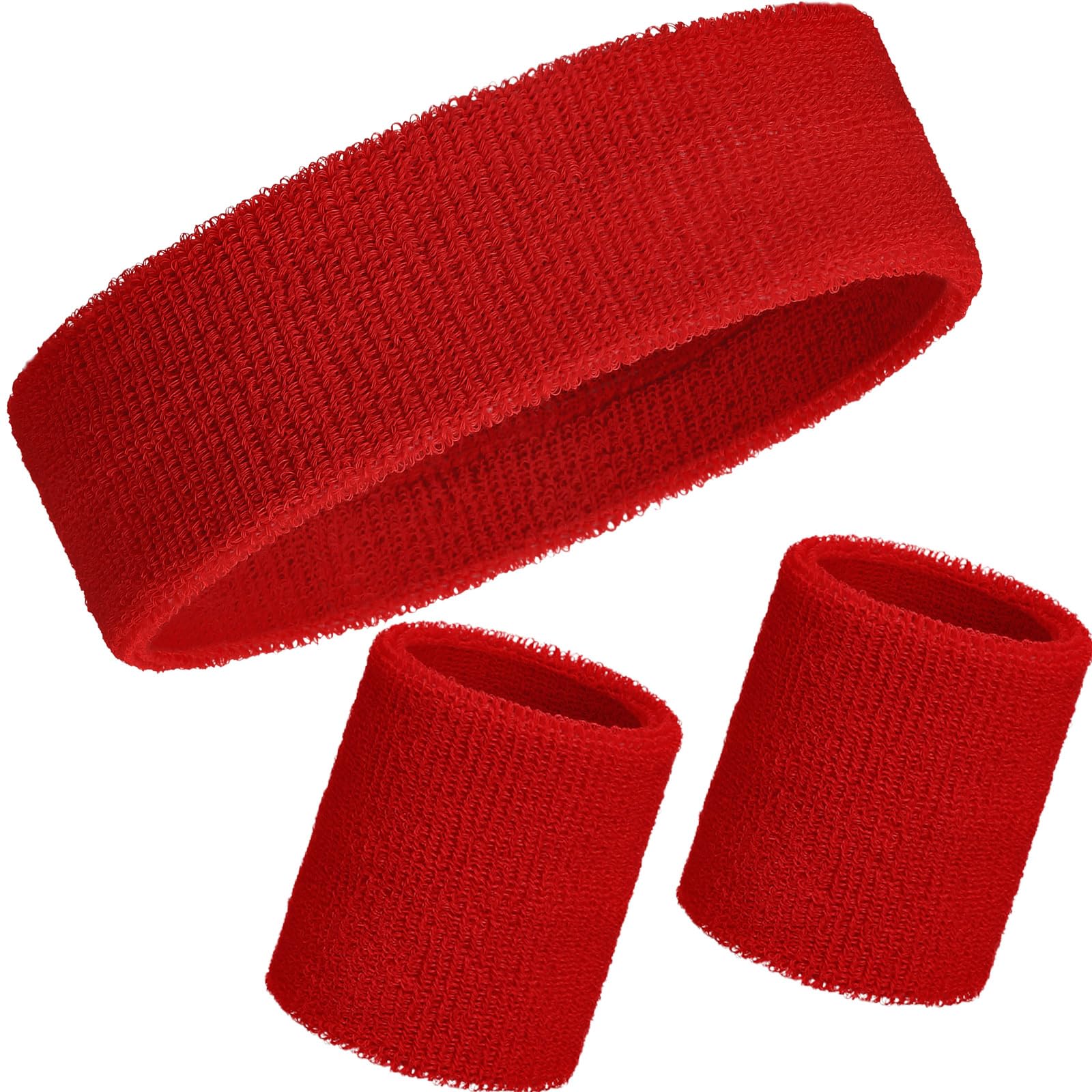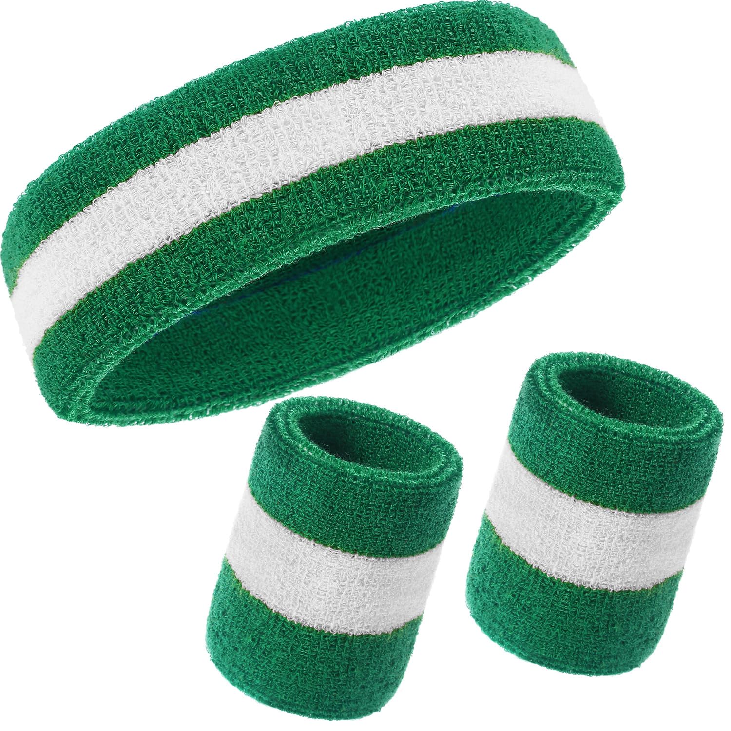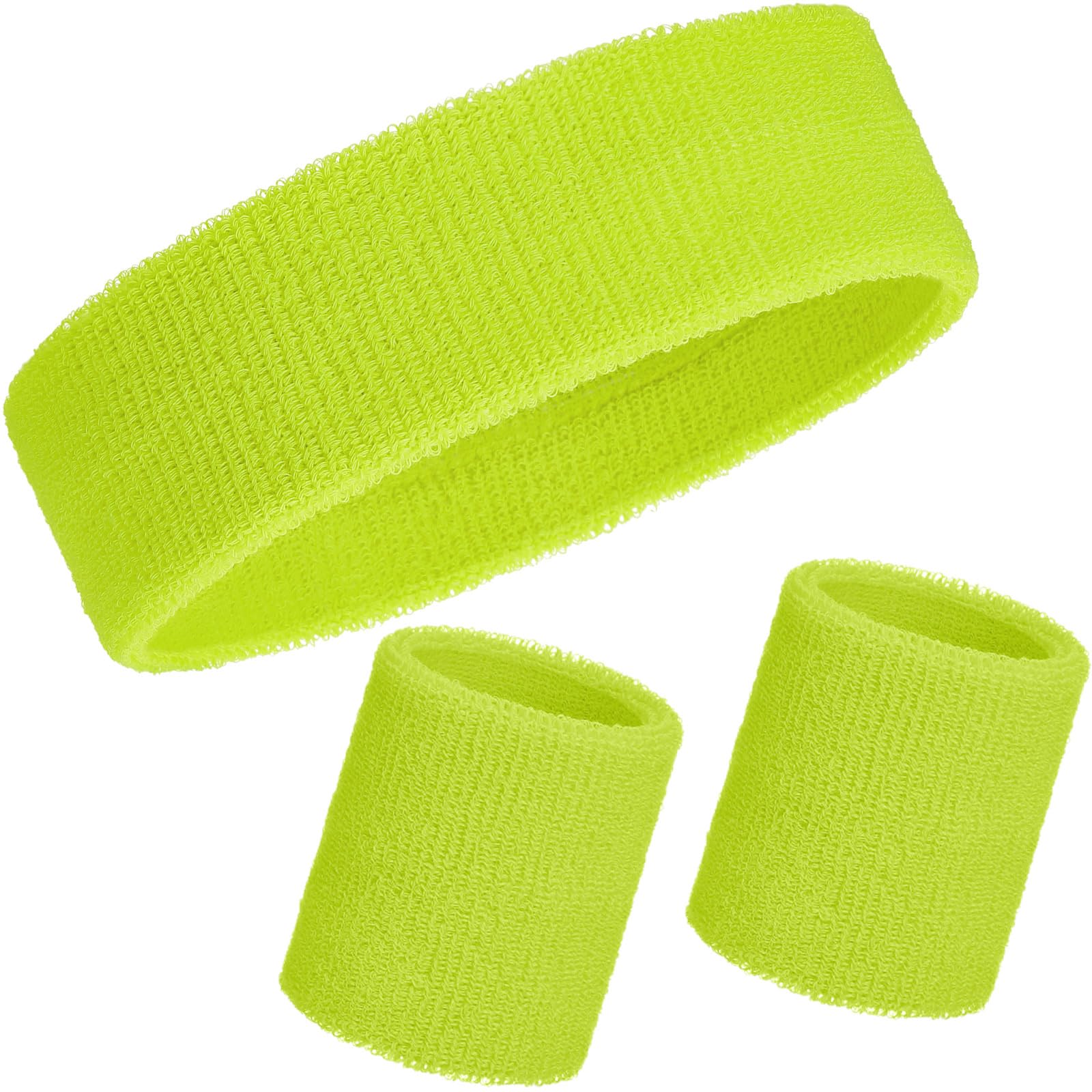 Comfortable sweatbands set: includes 1 pieces sweat headband and 1 pair of wrist sweatbands, which made of 85% cotton, 12% spandex and 3% nylon, soft, lightweight and elastic for comfortable wear Durable and washable: you can wash them by hands or machines after sporting, they can retain their form well and the color would stay bright, not easy to deform and fade Sweat-absorbent: the cotton headband absorbs your forehead's sweats efficiently and keeps sweat and mess hair away from your eyes; The sweat wristbands are helpful to wipe off your face's sweats Elastic sweatbands: the normal size of headband is 7.67 x 2.16 inch and wristband is 3.54 x 3.15 inch (L x W), but they all have good elasticity which make them fit most men and women's heads and wrists Sport partners: suit for wearing in playing softball, volleyball, basketball, soccer, tennis, golf, running, doing yoga and more, sweatband set make you more fashionable