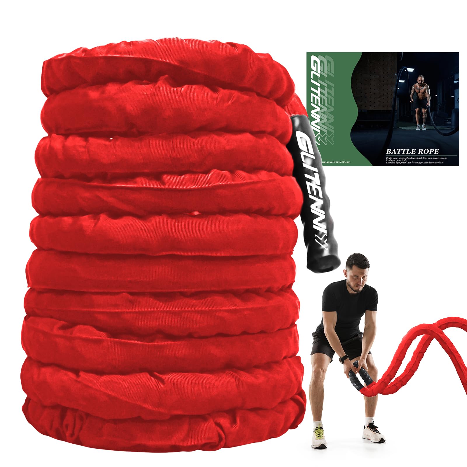 Multicolor Battle Rope to Choose: We offer black, pink, red, green, gray battle ropes with a thickness of 1 inches 30ft, suitable for professionals who need to work out, you can choose the color according to your preference. Whether you are working out at home or outdoors, this workout rope is a good choice. workout ropes for home gym can be easily rolled up for compact storage and are designed to be portable. Gym Rope with Protective Sleeve: The nylon protective sleeve protects theexercise rope from friction damage and ensures a durable product. Weighted ropes for exercises is made of 3 strands of 100% polyester fiber, which is compact, strong in tensile strength and resistant to loosening and deformation, The perfect combination of 3-strand construction and nylon protective sleeve of the workout rope makes the product more durable, so your weighted workout ropes won't start to fray and fall apart, even on concrete! Exercise Rope with NON-SLIP Design Handle: The handle is designed to protect your hands with an added non-slip design that provides a firm grip when you are using the battle rope Easy to Use Workout Rope: The training rope can be used on its own or as part of a team for landing, pulling or climbing exercises - Fight Rope, Sports Rope, Training Rope, Fight Rope, Fitness Rope, Undulating Rope, Adjustment Rope, Climbing Rope, Race Rope and more. If it is outdoors, it can be tied directly to trees, fixed posts or outdoor fitness equipment with accessories Fitness Rope: work hands, arms, shoulders, back, core and even legs for a total body workout. Provides an excellent workout for boxers, swimmers, martial artists, as well as baseball, basketball, football and tennis players! If you are not satisfied with the battle rope you received, you can contact us, we will solve the problem for you at the first time, buy it now and send it to your loved ones and friend